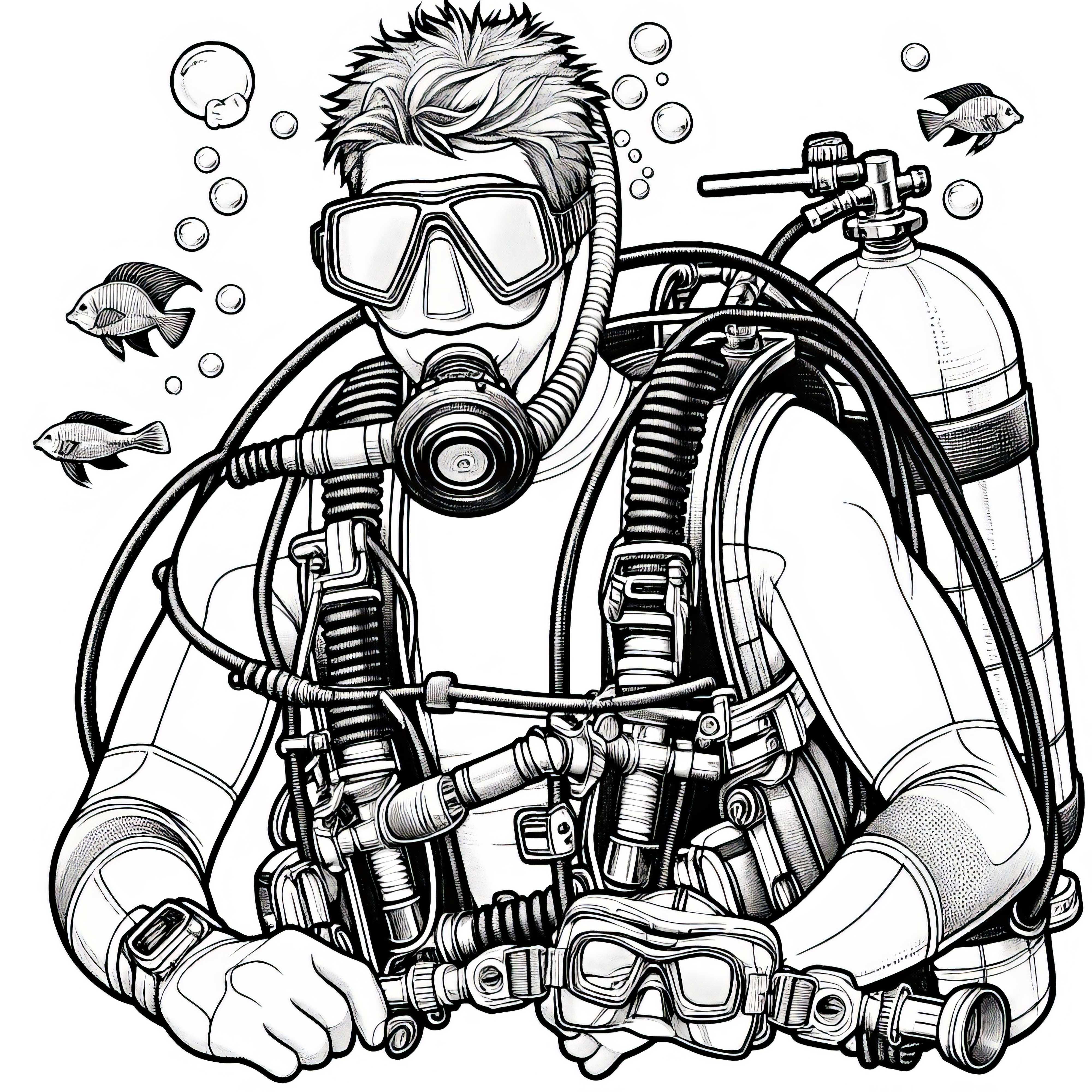 Plongée avec bouteille de plongée - Modèle à colorier gratuit et facile
