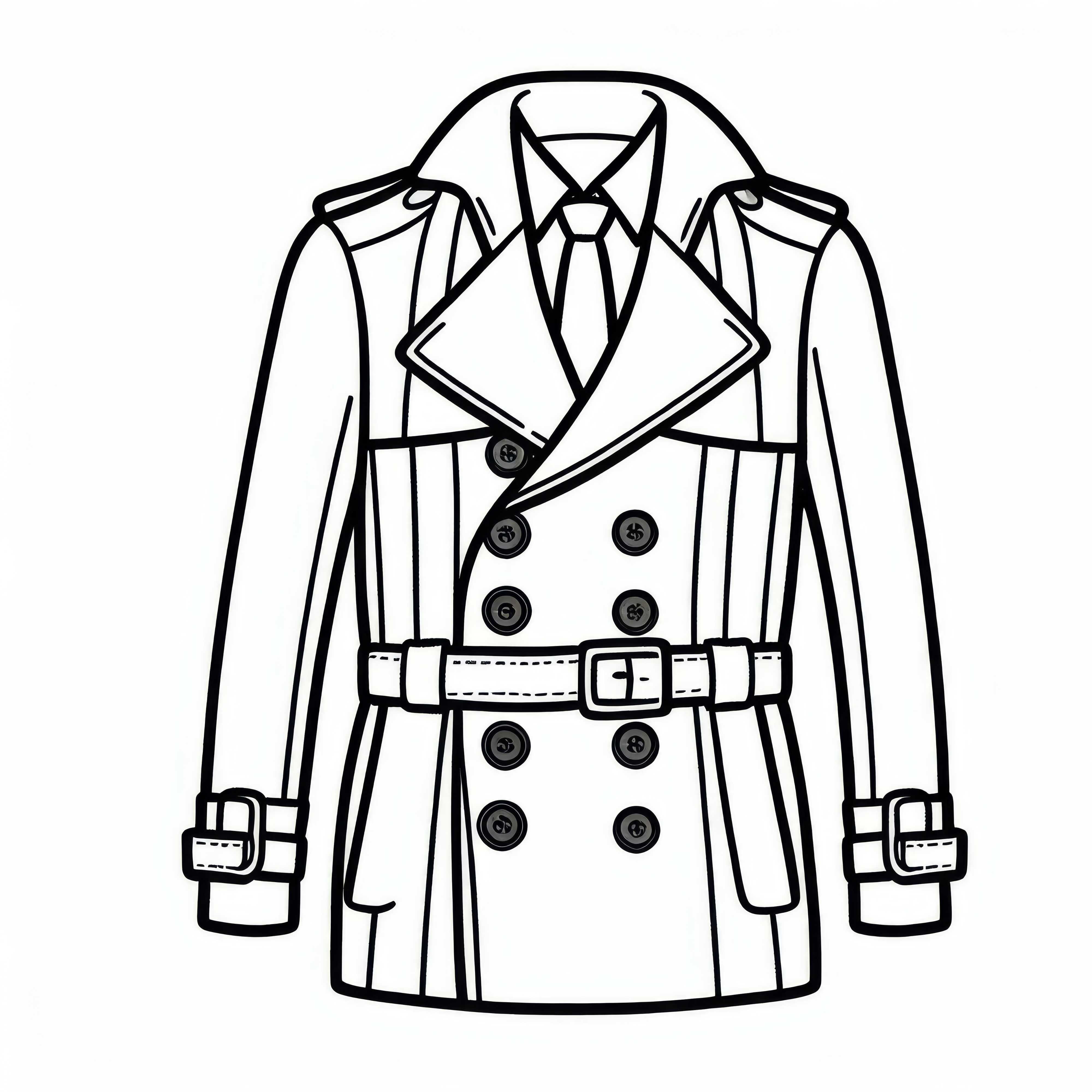 Modèle de coloriage de trench-coat détaillé. Téléchargez l'image maintenant !