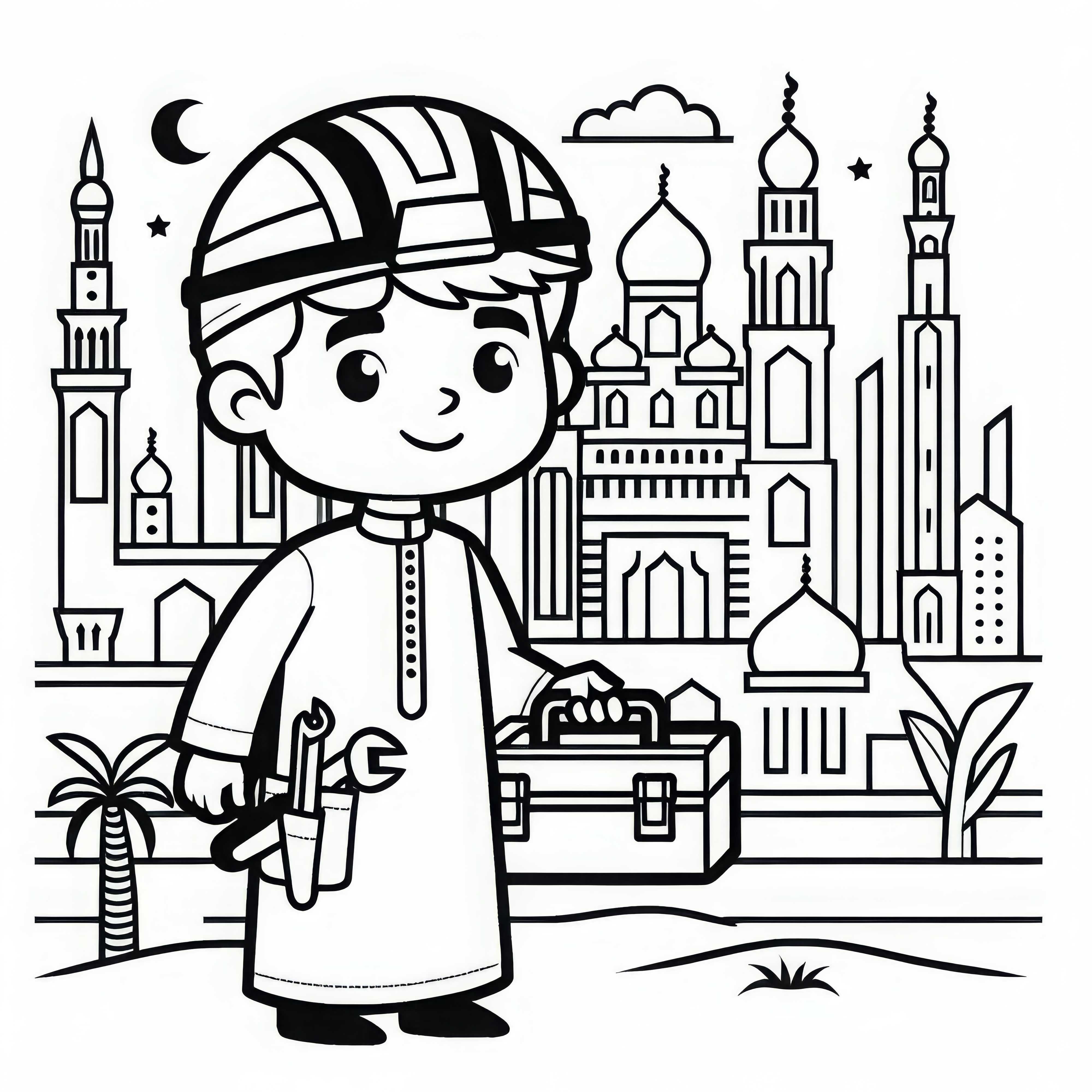 Ouvrier du bâtiment avec une boîte à outils – Modèle de coloriage pour les garçons à partir de trois ans