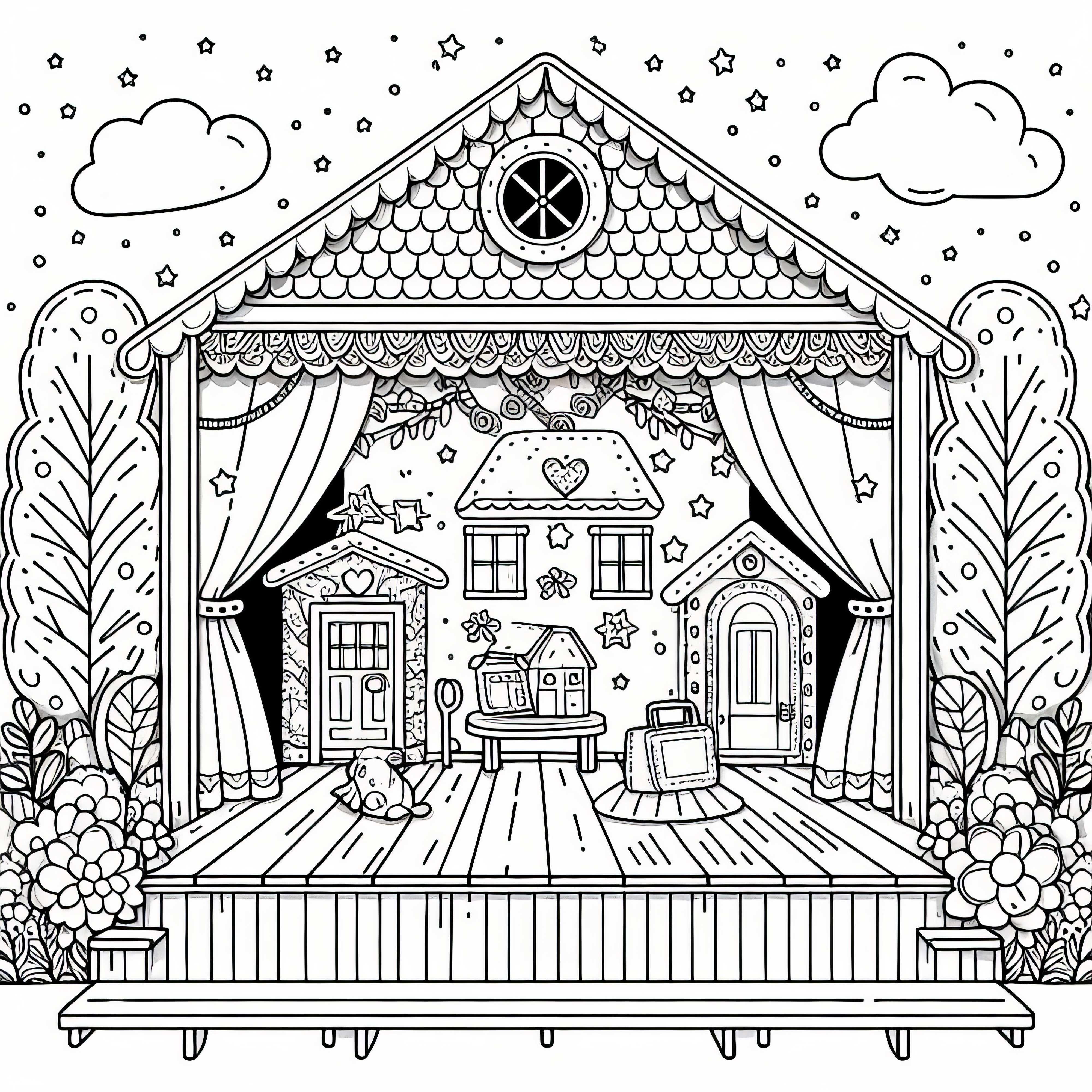 Étagère de bricolage avec des ciseaux, du papier et des paillettes : modèle à colorier gratuit pour les filles à partir de six ans