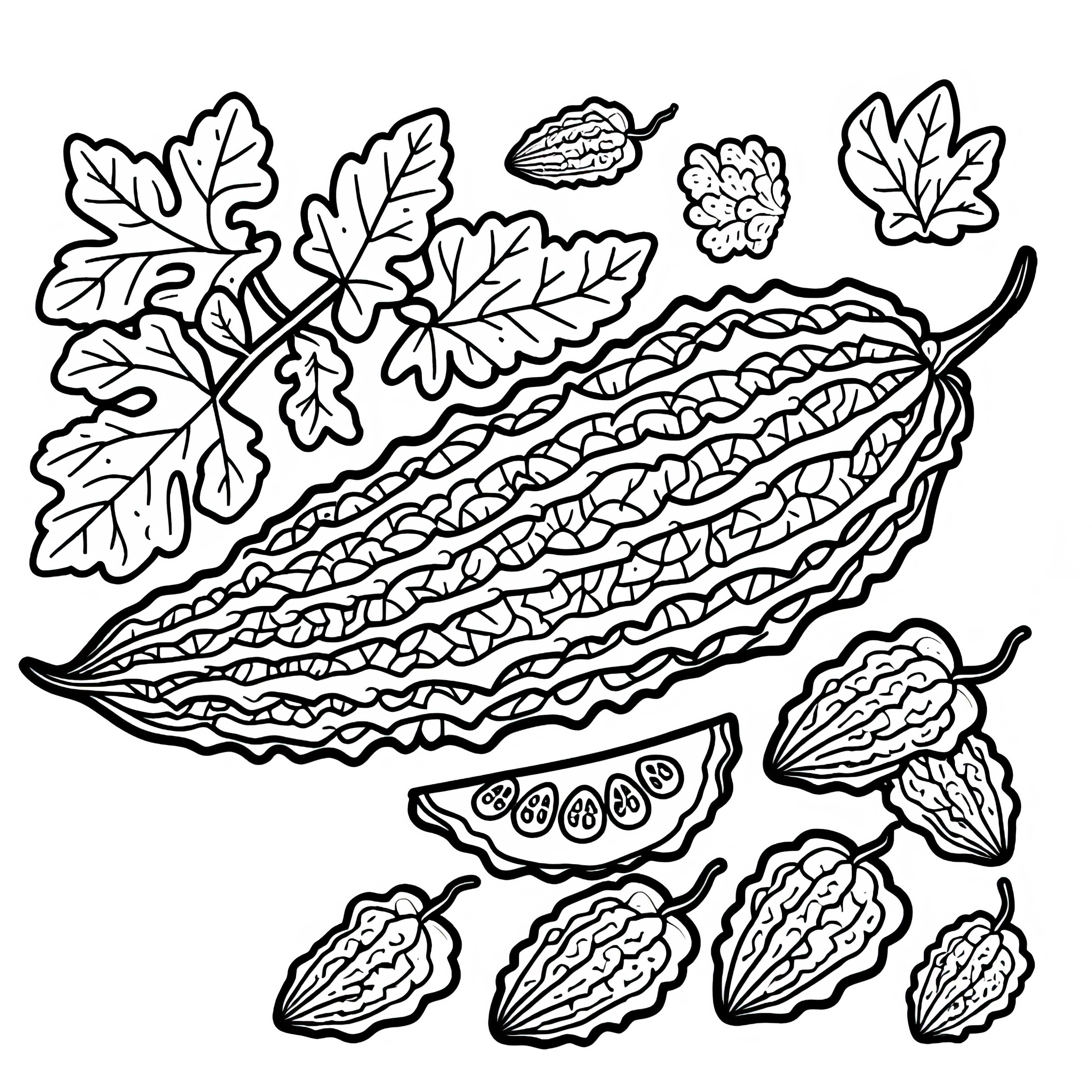 Image à colorier avec melon amer et concombre amer. Télécharge maintenant l'image!