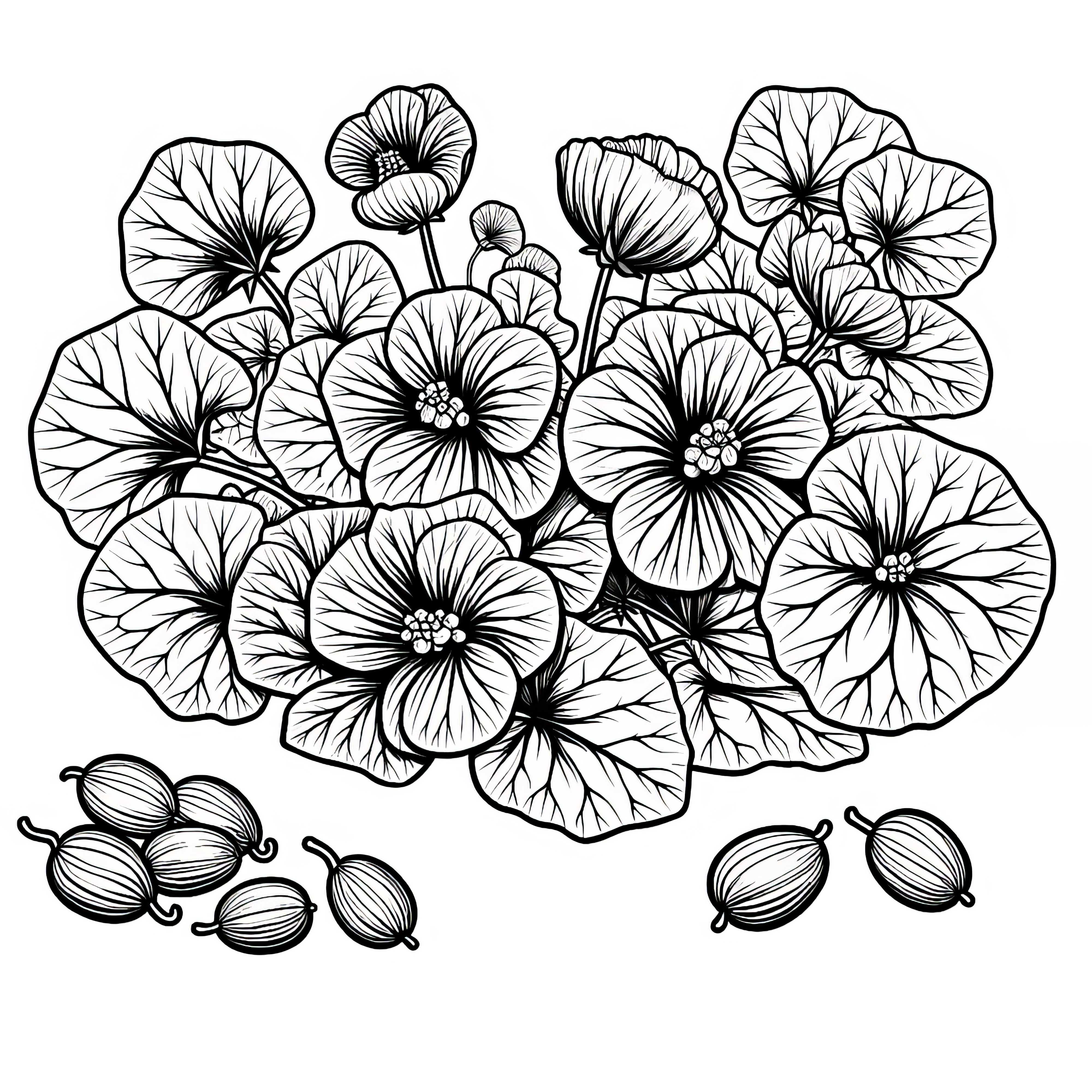 Découvrez le monde créatif des capucines avec notre modèle de coloriage gratuit ! Cette image à colorier de haute qualité montre la magnifique fleur de capucine et invite à être créatif avec des couleurs. Vous pouvez facilement télécharger et imprimer l'image ou même colorier en ligne, sans avoir besoin de vous inscrire. Téléchargez le modèle de coloriage maintenant et commencez à colorier !