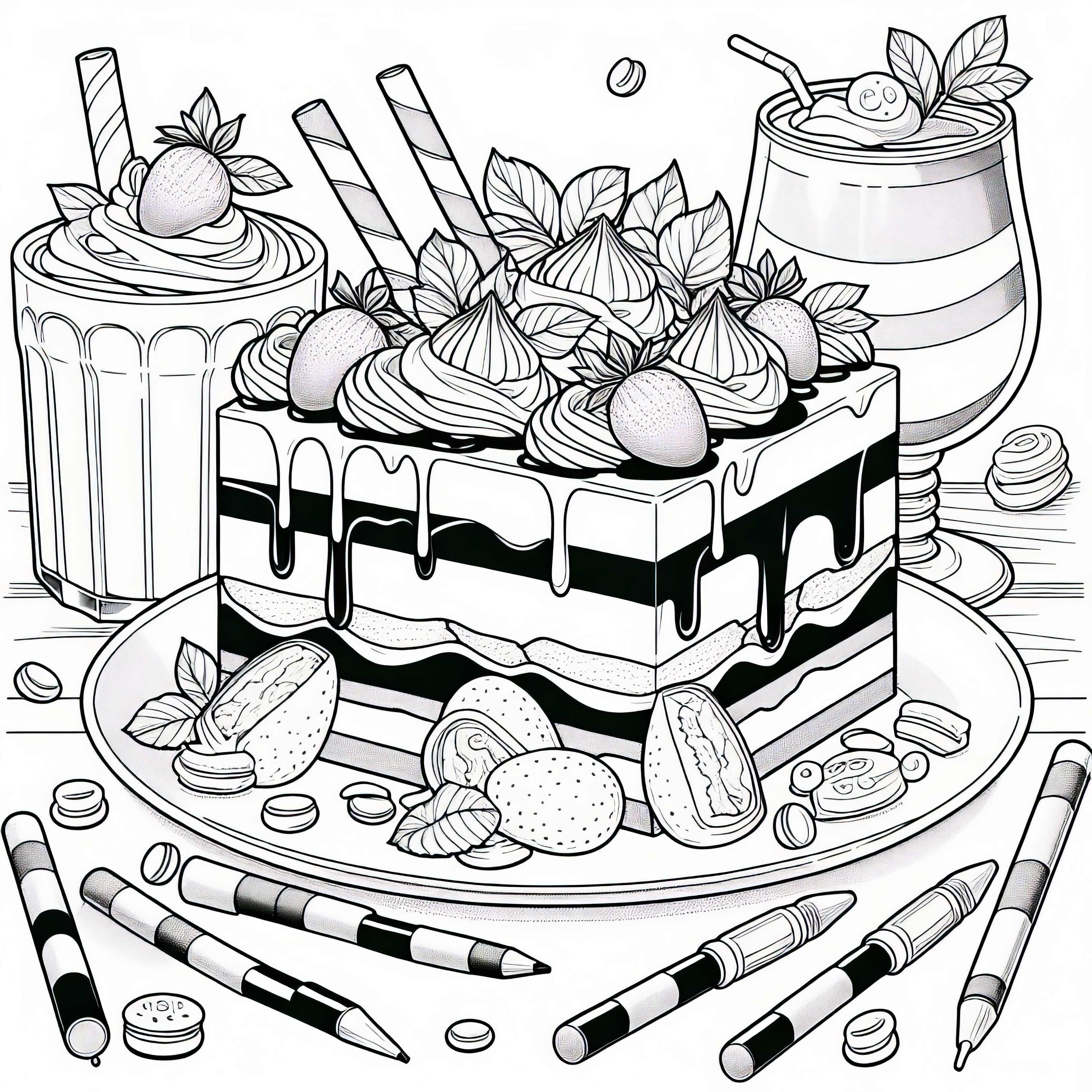 Modèle de coloriage gratuit pour gâteaux et tartes en tant que dessert