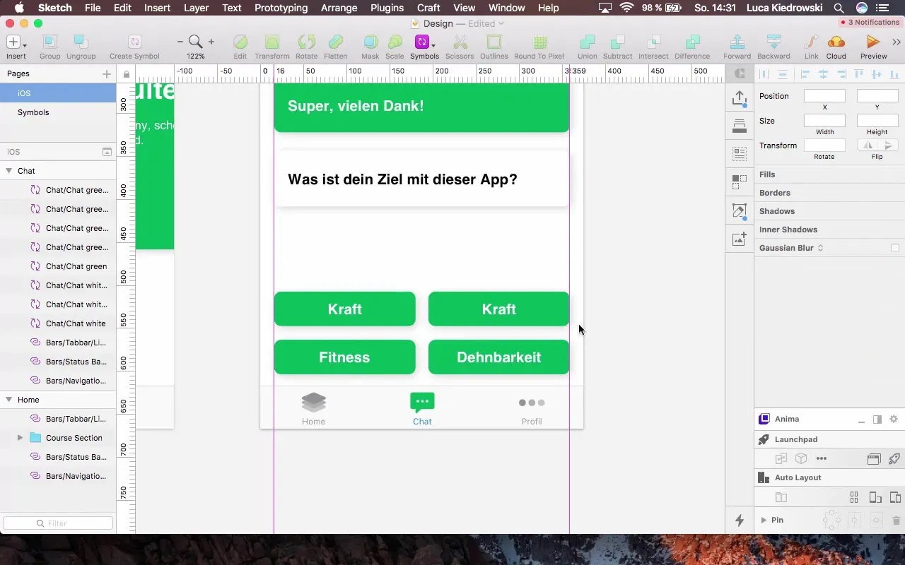 Tout d'abord, nous allons commencer par créer le contrôleur de chat. Tu devrais déjà être familiarisé avec l'interface de Sketch, donc nous allons directement passer à la conception.