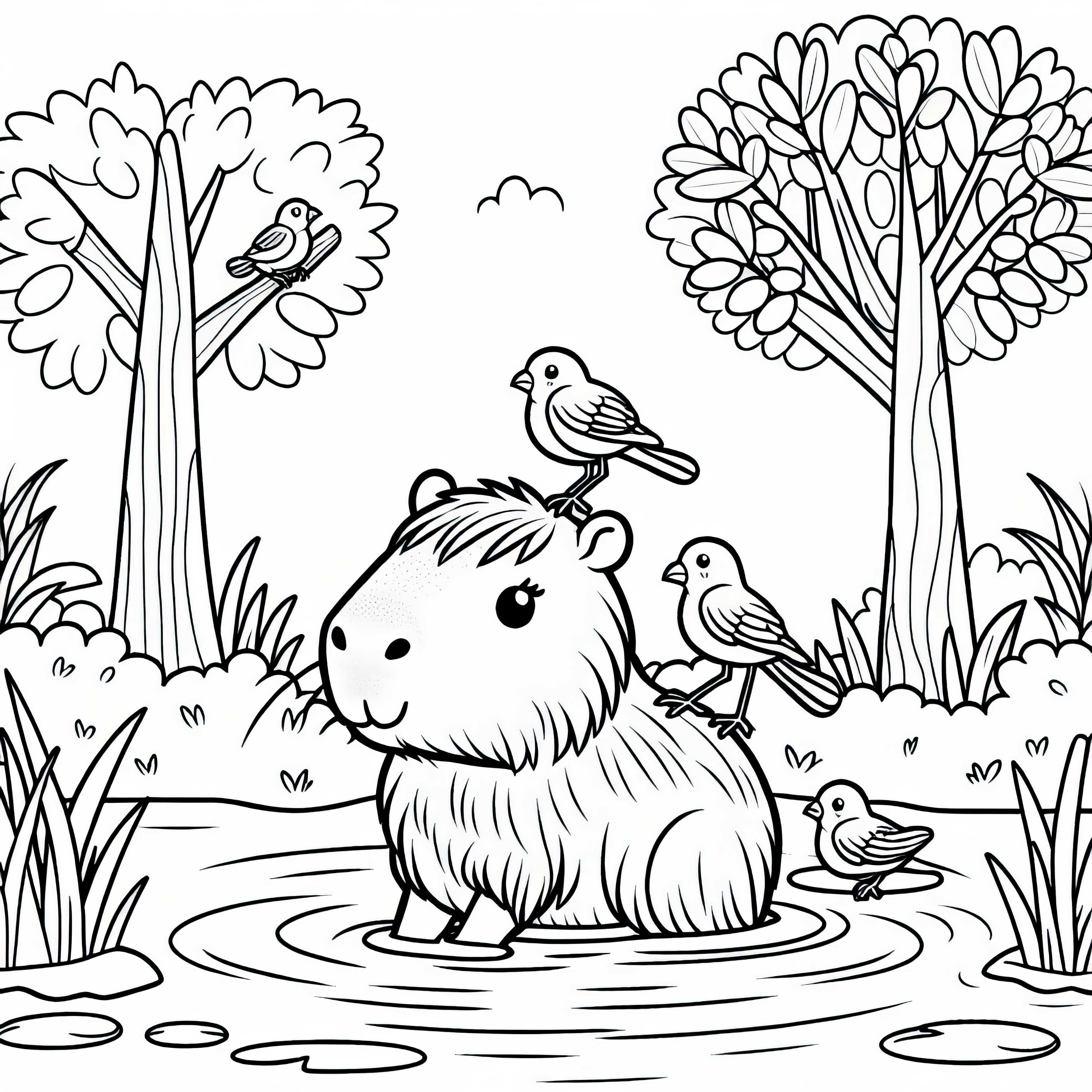 Vízi malacok csoportja pihen egy fa árnyékában - Ingyenes színezőlap