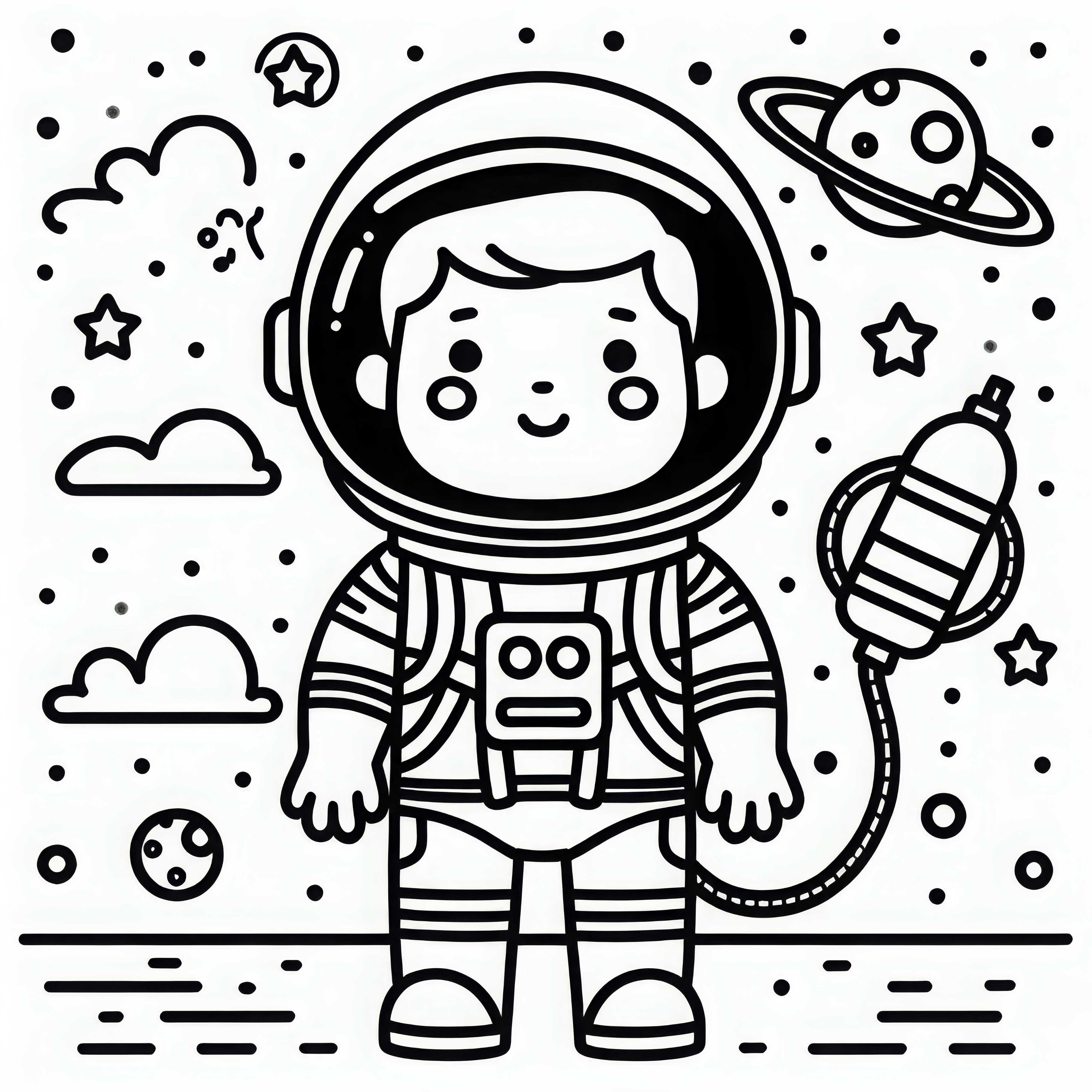 Csillagok és bolygók űrhajós színezőlap – Részletes és ingyenes