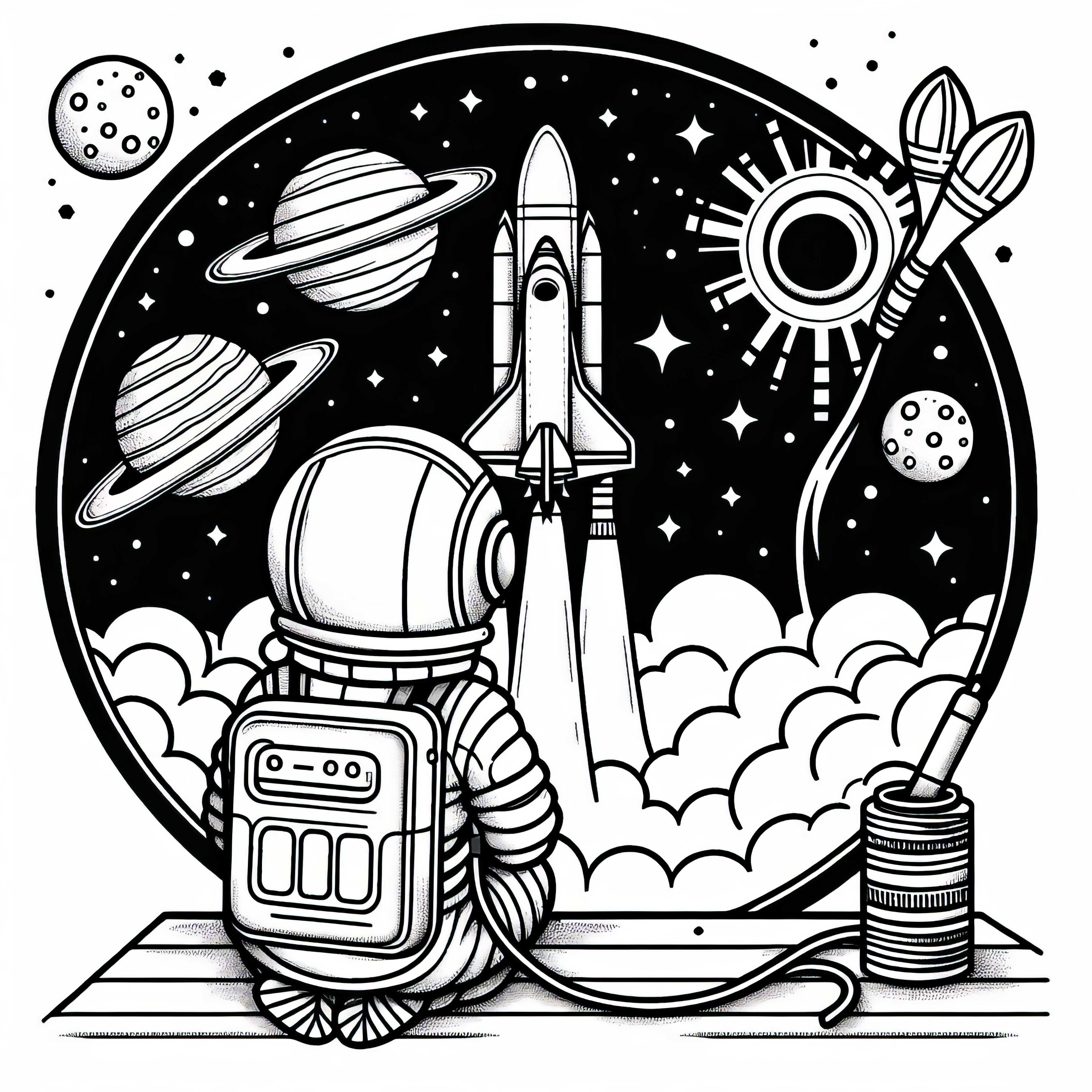 Csillagok és bolygók űrhajós színezőlap – Részletes és ingyenes