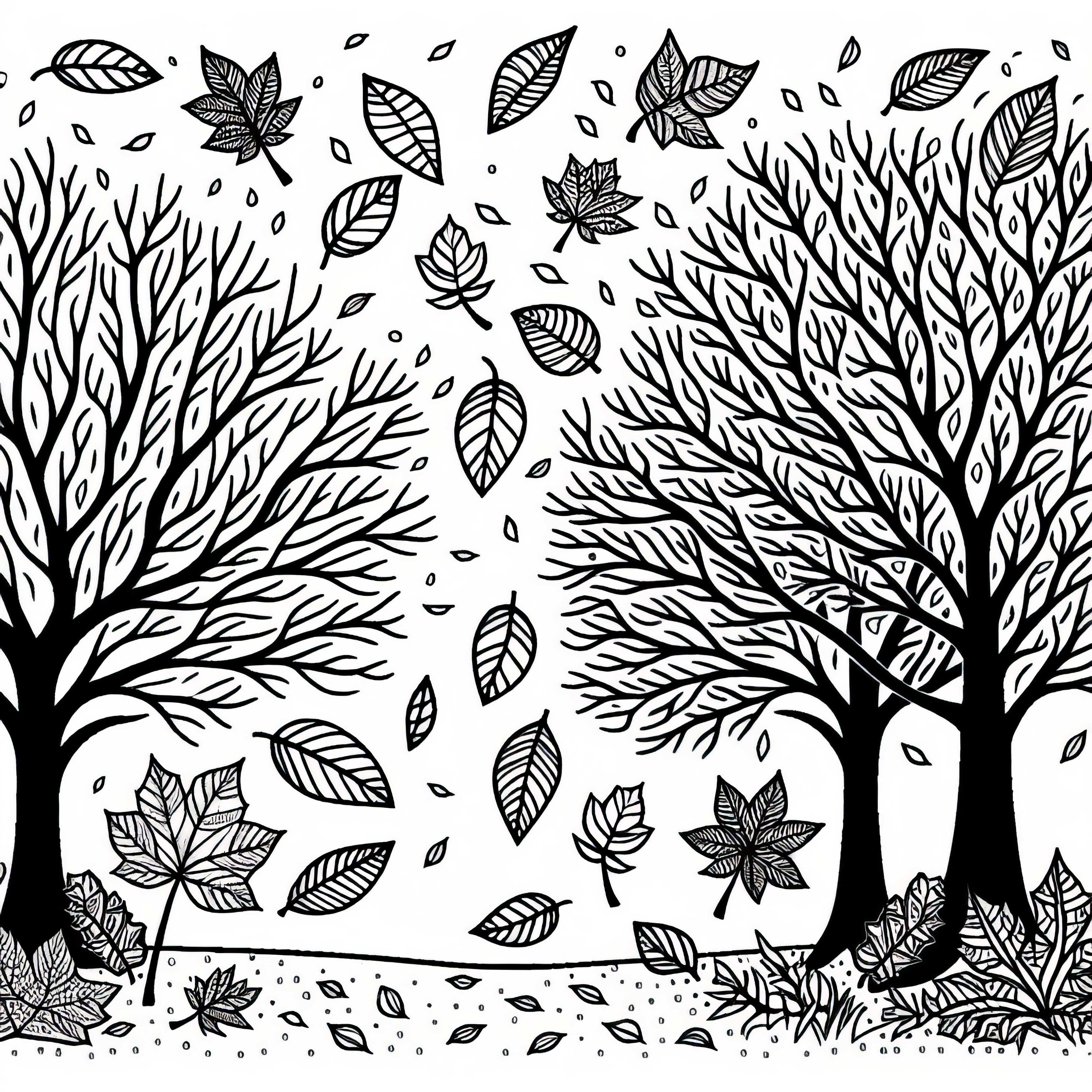Őszi levelek, amelyeket a szél fúj – Ingyenes színezőlap