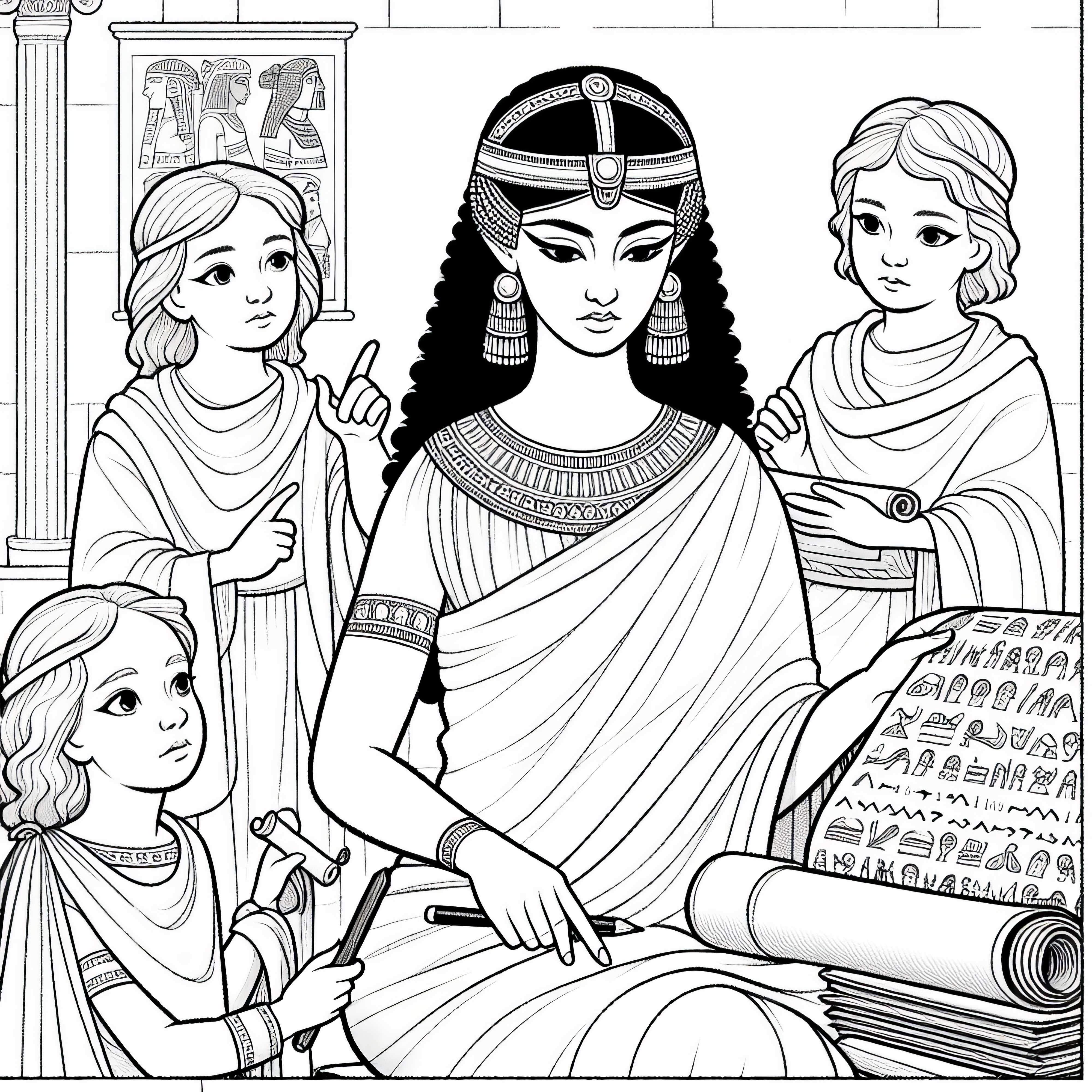 Kleopátra a trónon – Történelmi női figurák ingyenes színező lapja