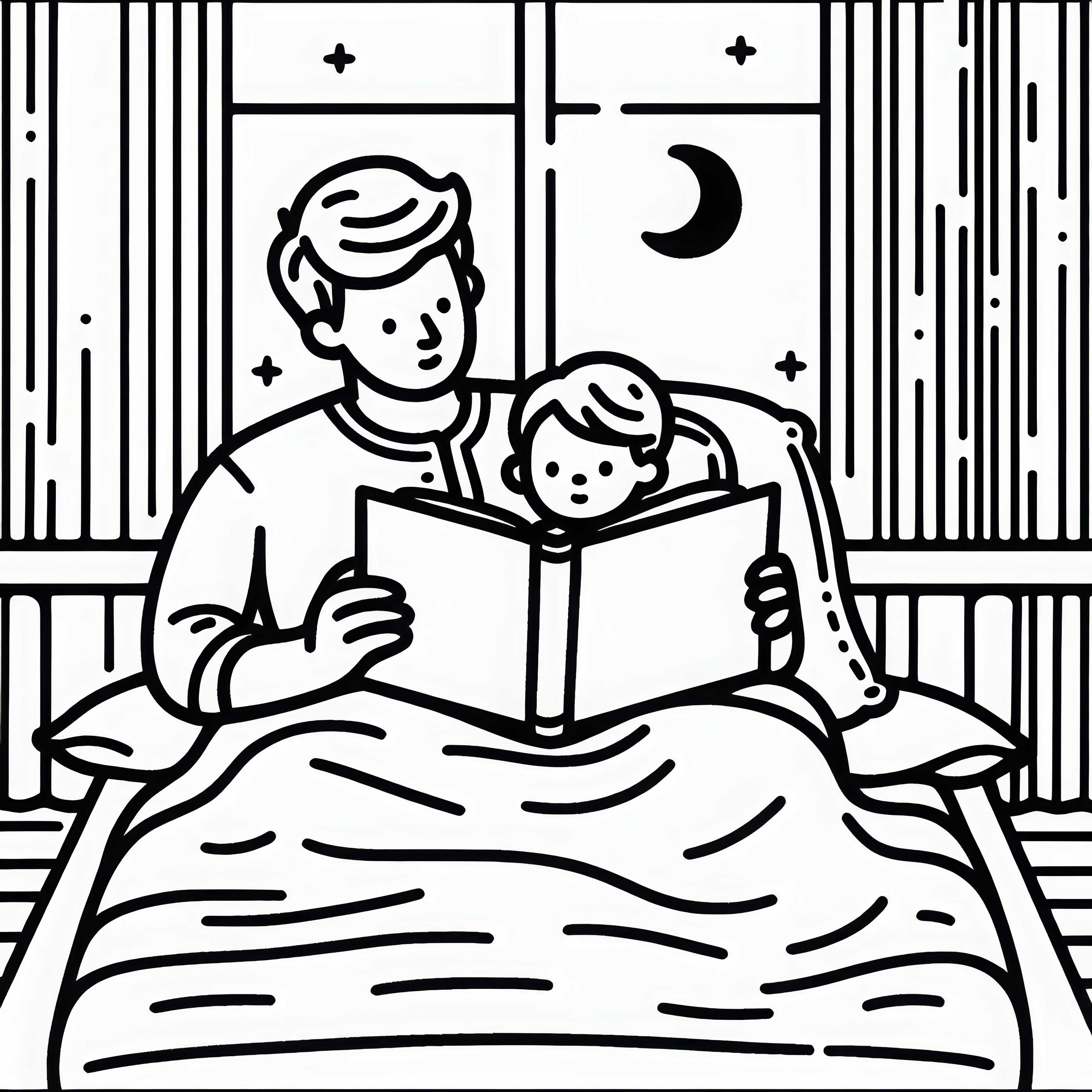 A gyermek álmodozva néz ki az ablakon, mielőtt ágyba bújna – Ingyenes színező kép
