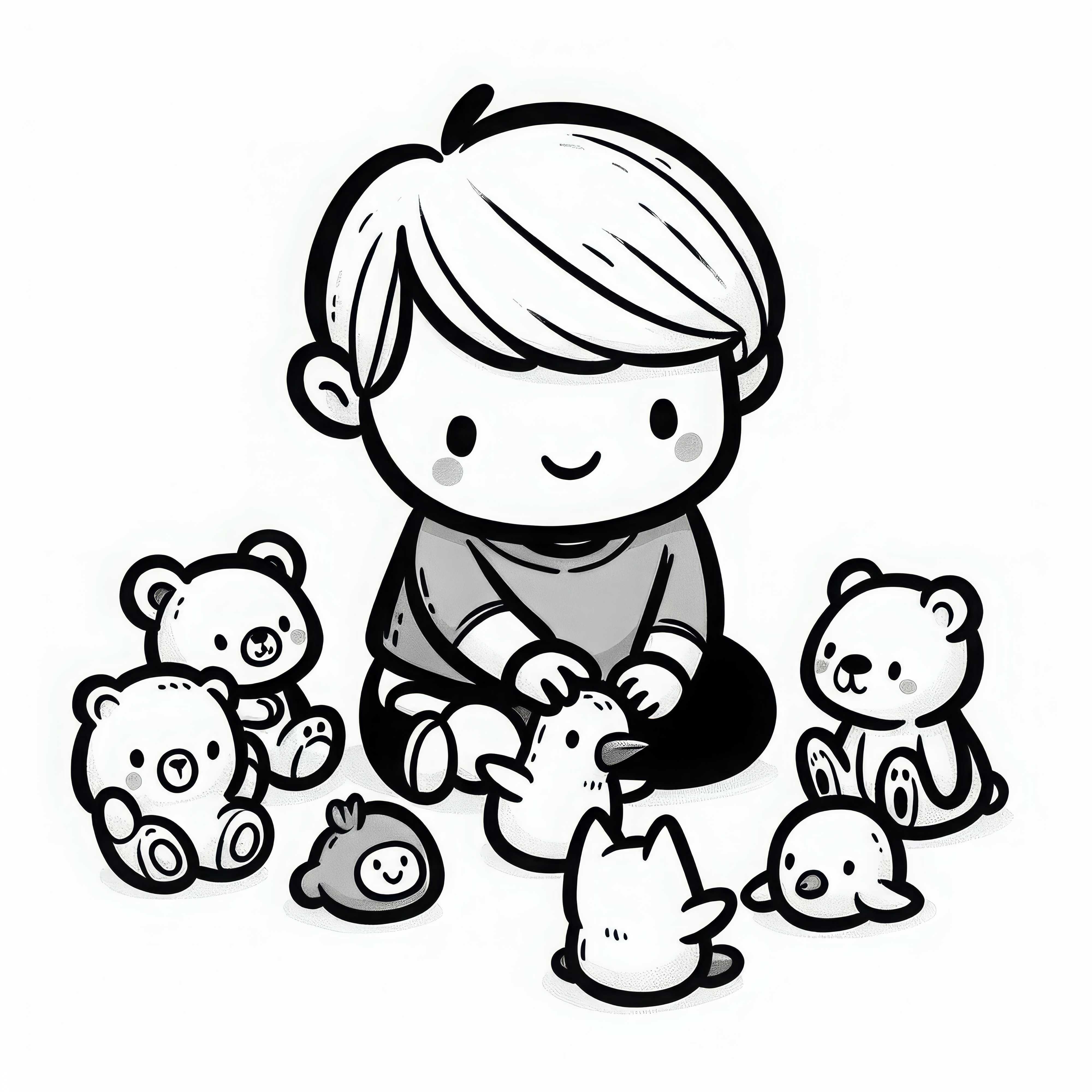 A gyermek hozza a plüssállatot, egy kis takarót, és beteszi a babaágyba - ingyenes színezőlap