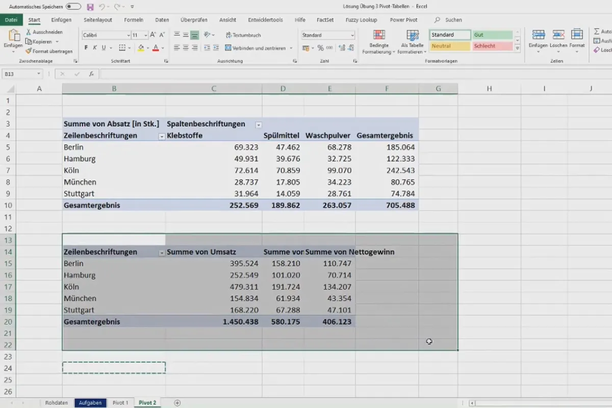 Dengan demikian, dalam waktu singkat kamu akan berhasil membuat Laporan yang informatif dan menarik secara visual. Selanjutnya, kamu akan mempelajari di bab bonus bagaimana untuk mengevaluasi data-data mu secara lebih efektif dengan bantuan Power Pivot dan Power BI.