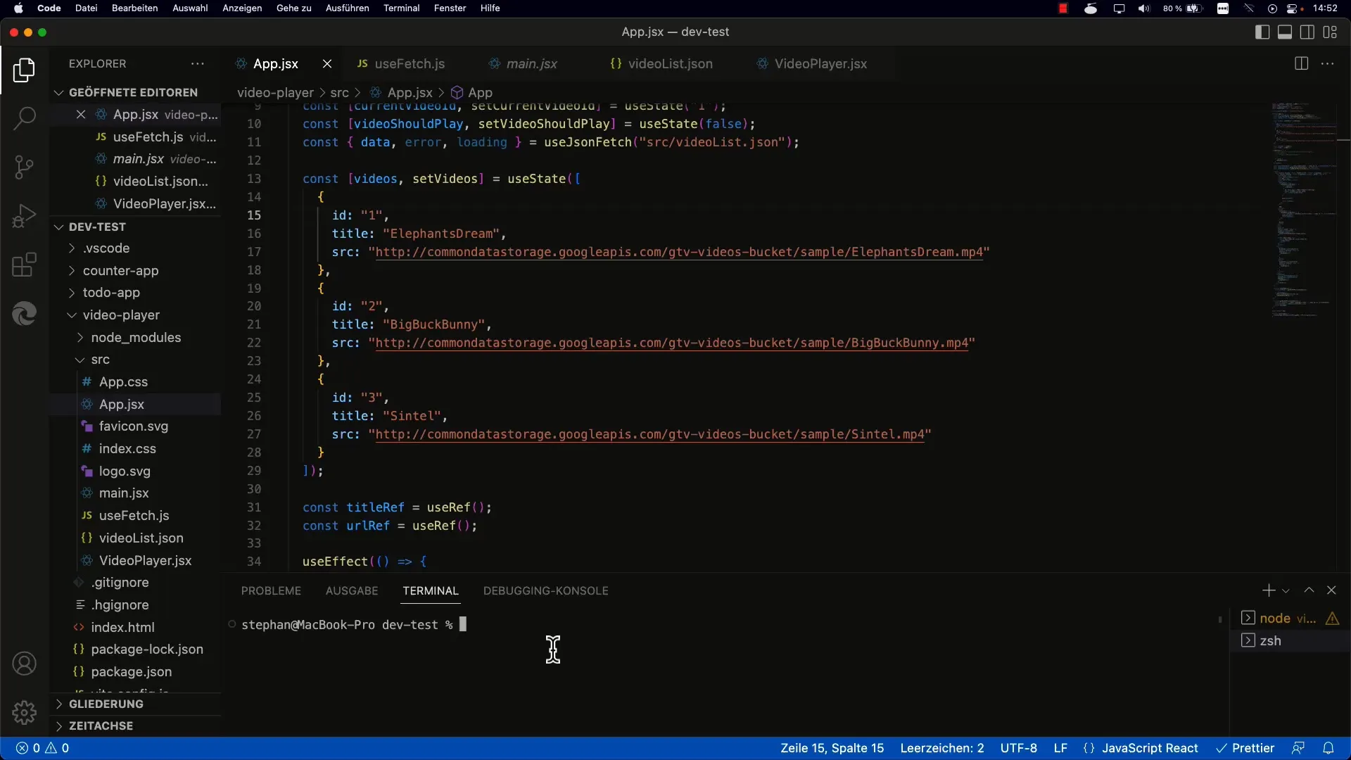 Pada contoh ini, initialVideos adalah nilai awal untuk State Anda. Sekarang Anda dapat menggunakan setVideos untuk membuat perubahan pada State Anda.