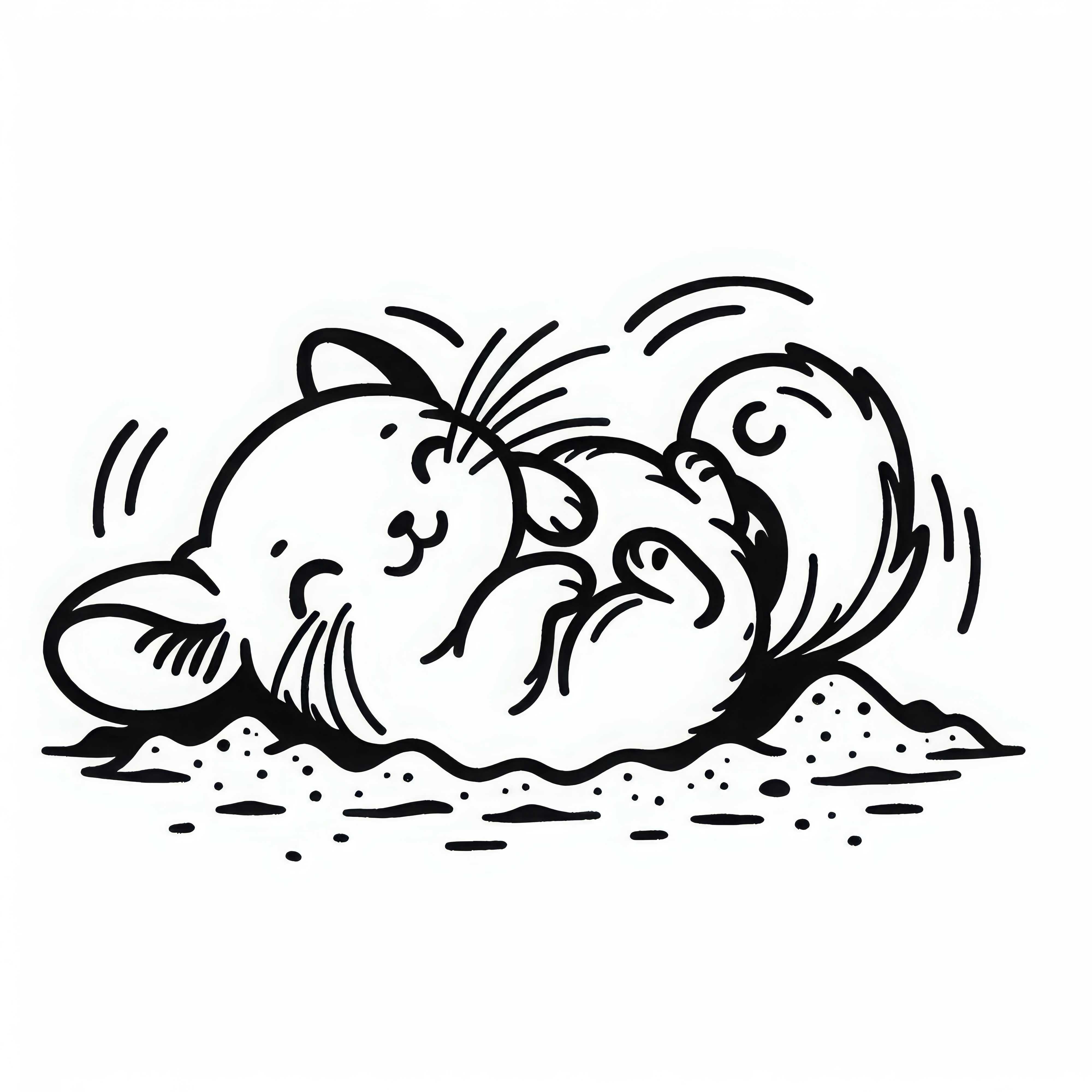 Chinchilla menggulung dirinya di pasir untuk membersihkan bulunya – Template mewarnai gratis dan mudah