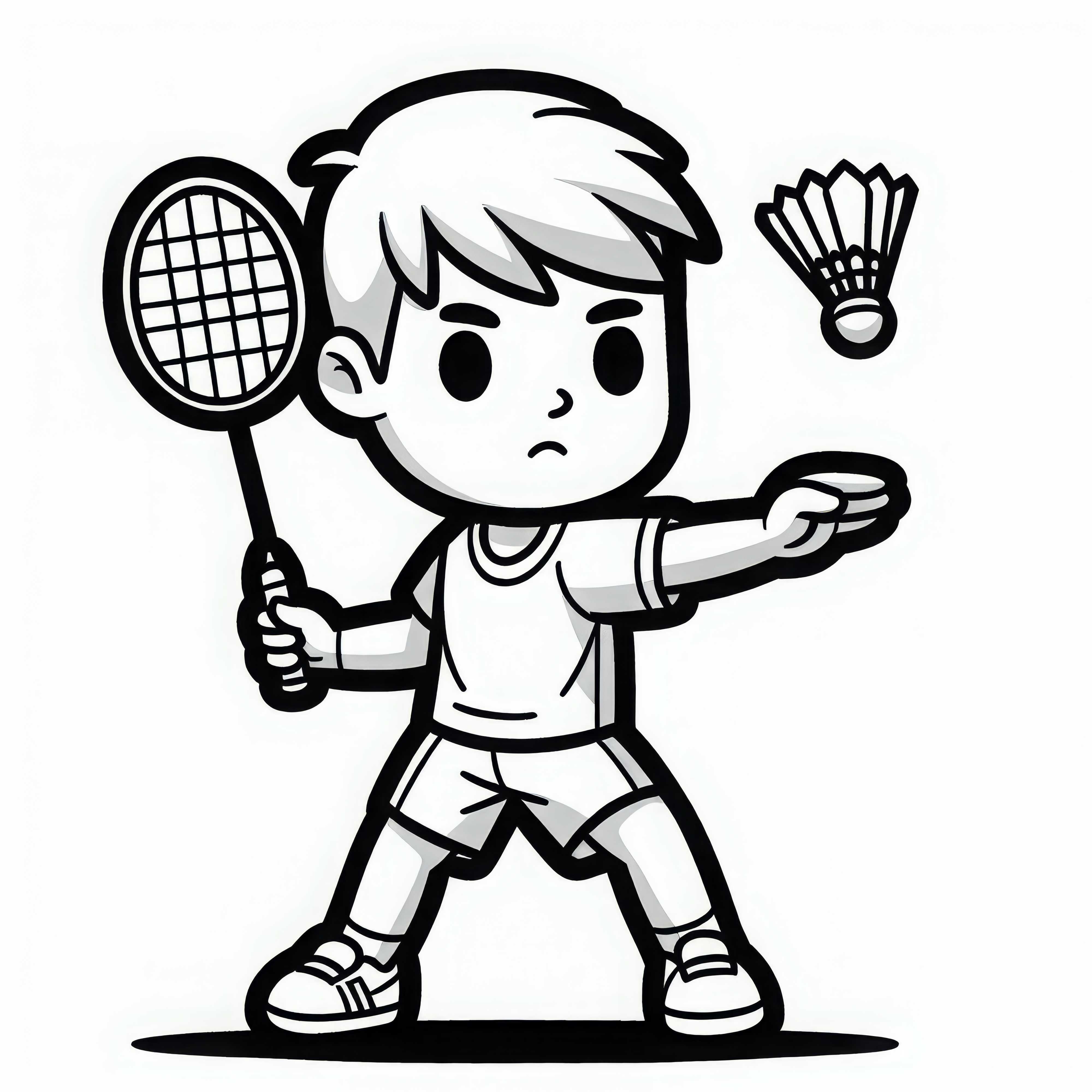 Template Mewarnai Pukul Badminton Simple Gratis untuk Diunduh dan Dihias Ulang