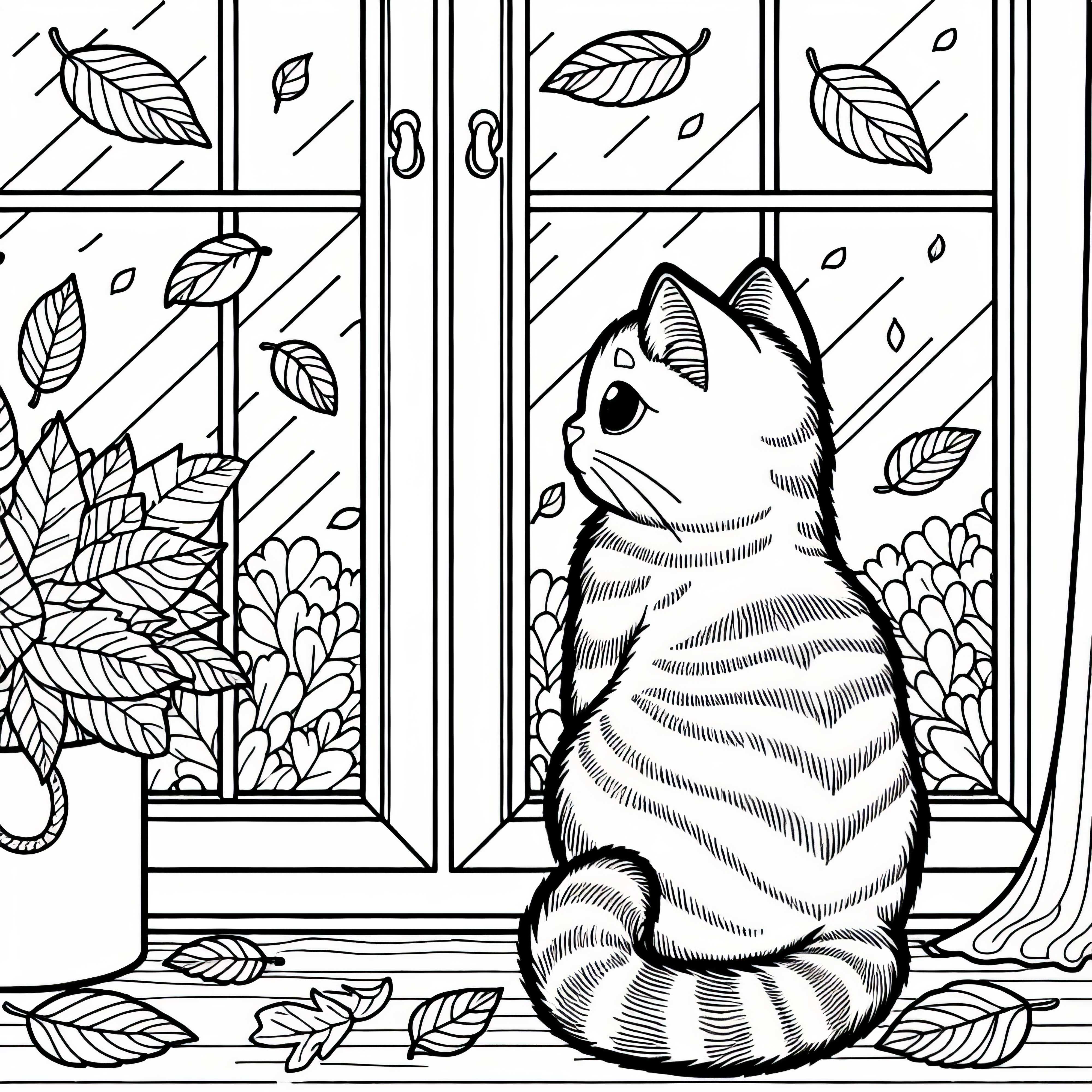 Anak melihat melalui jendela dengan gambar jendela bertema musim gugur - Gambar mewarnai musim gugur gratis