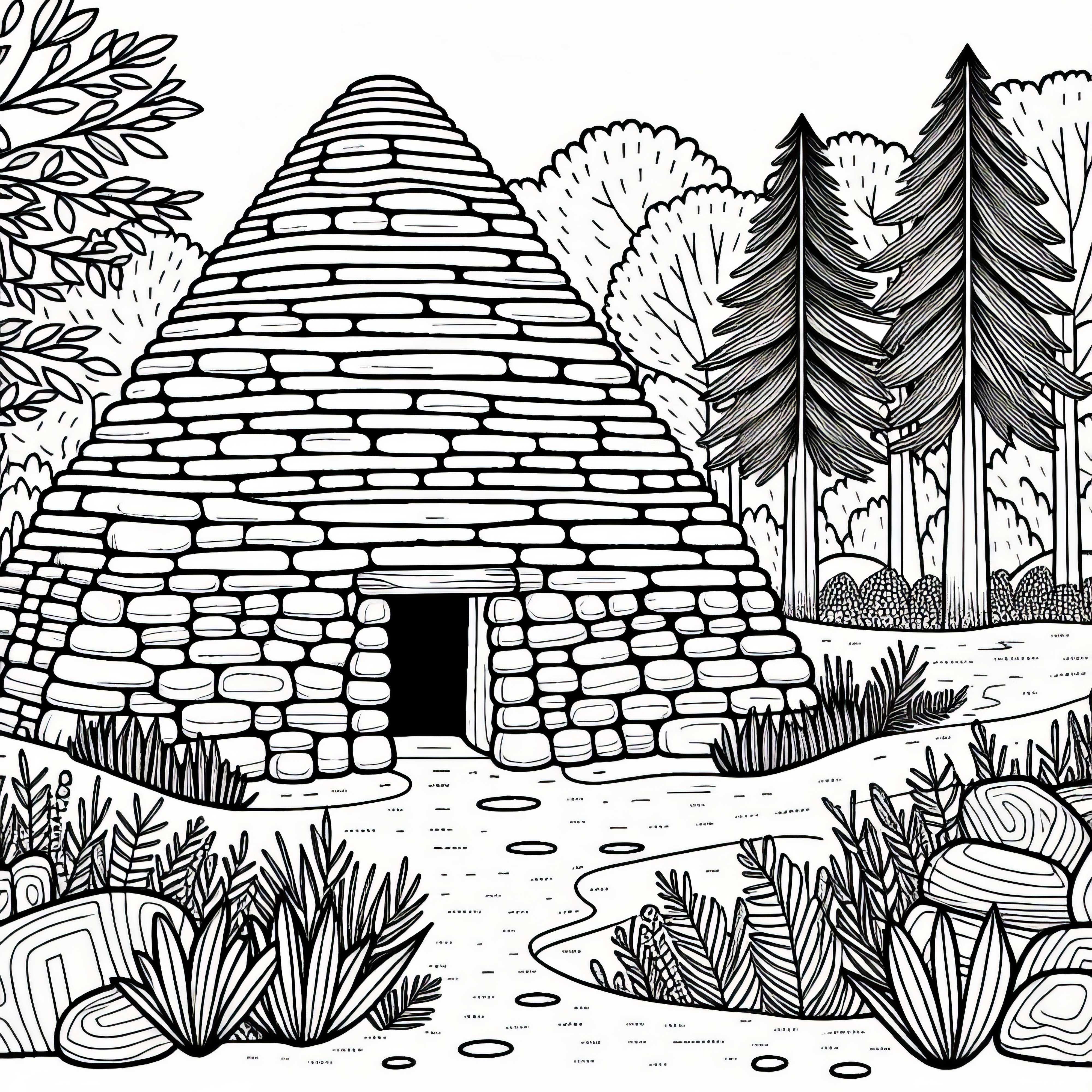 Anak-anak di depan igloo - Gambar untuk diwarnai gratis