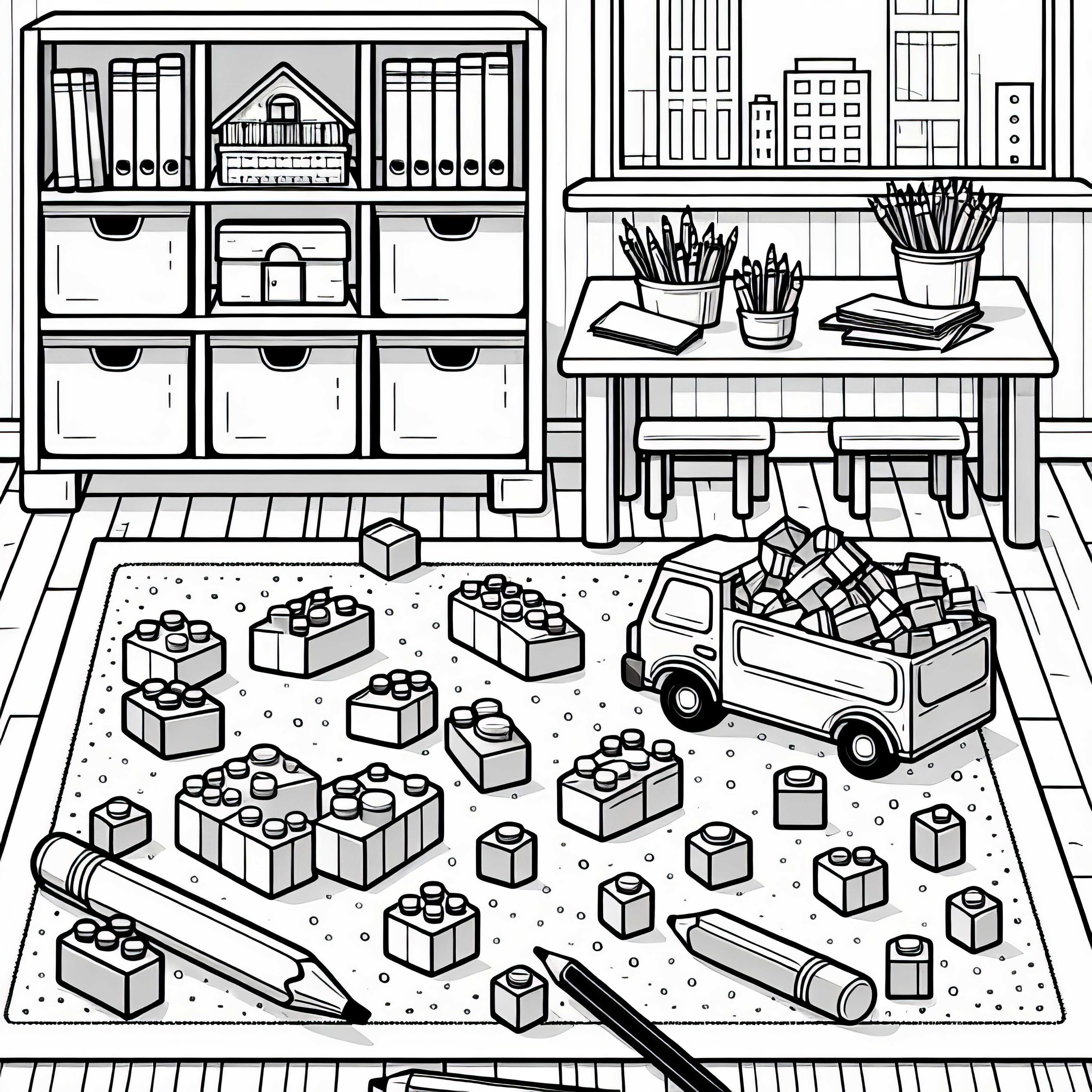 Anak-anak membangun sebuah kastil raksasa dari balok puzzel - Gambar pewarnaan gratis
