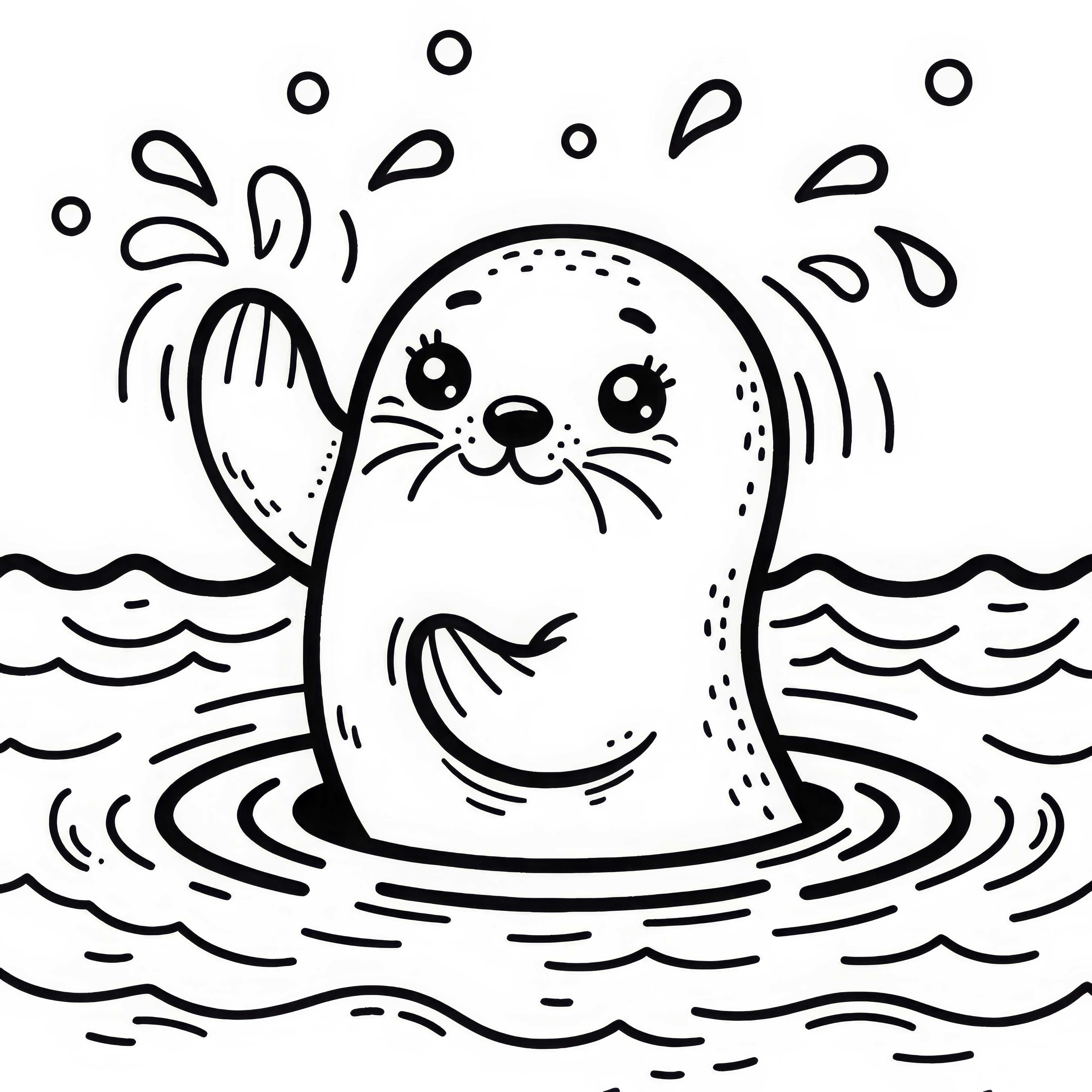 Anjing laut bermain-main menepuk air dengan sirip - Gambar untuk diwarnai secara detail
