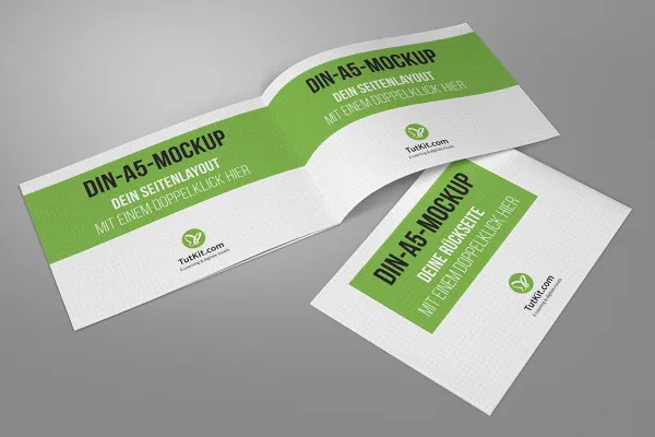 Hai progettato una brochure nel formato paesaggio A5 o A4 e desideri ora visualizzarla come se fosse stampata in una scena fotorealistica? Utilizza semplicemente questi 10 mockup: scegli uno sfondo, inserisci il tuo design e Photoshop regolerà automaticamente la prospettiva della tua brochure. Le immagini così create le utilizzerai ad esempio nel tuo portfolio o per la presentazione ai clienti.
