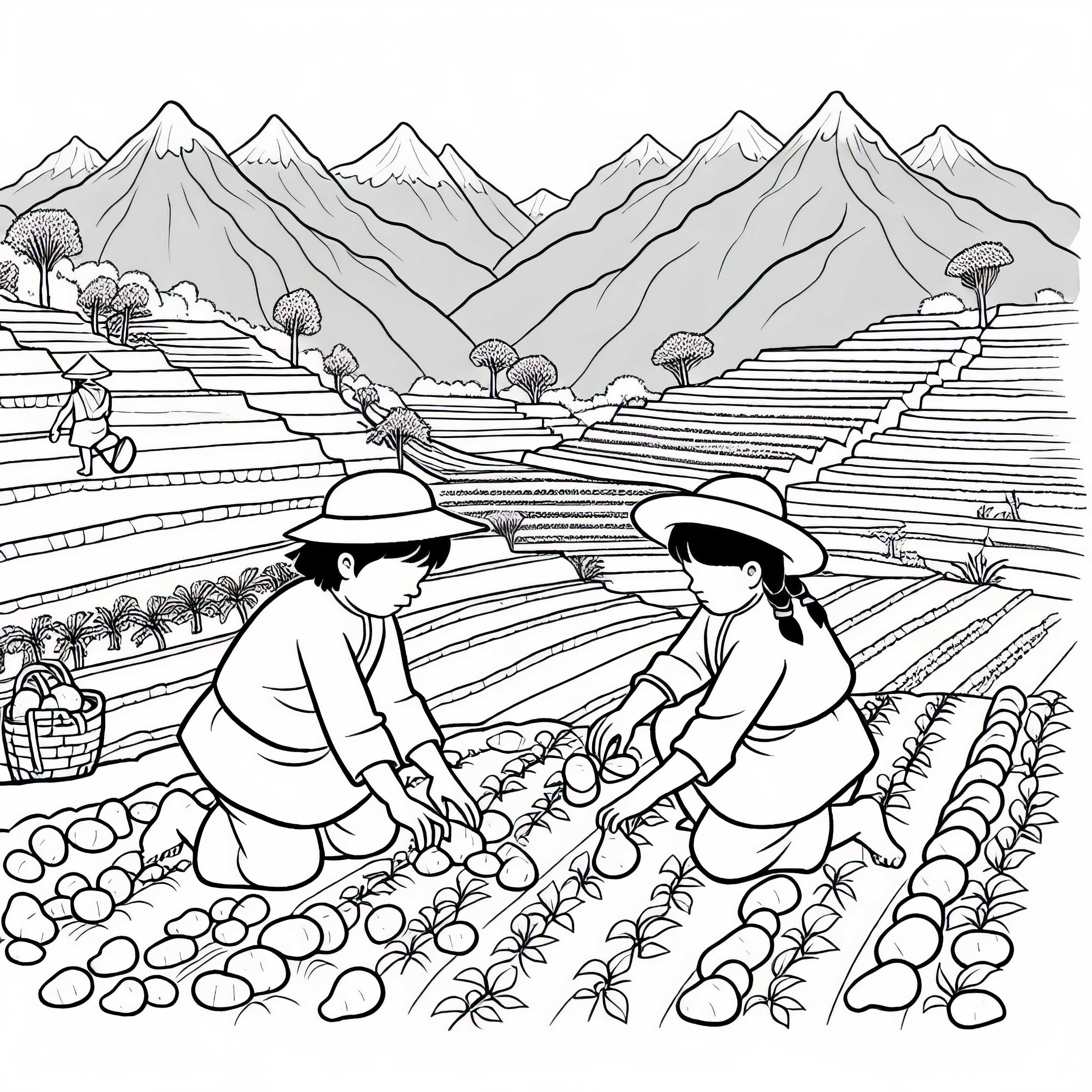 Bambini con foglia di mais - Disegno da colorare Inca da scaricare gratuitamente