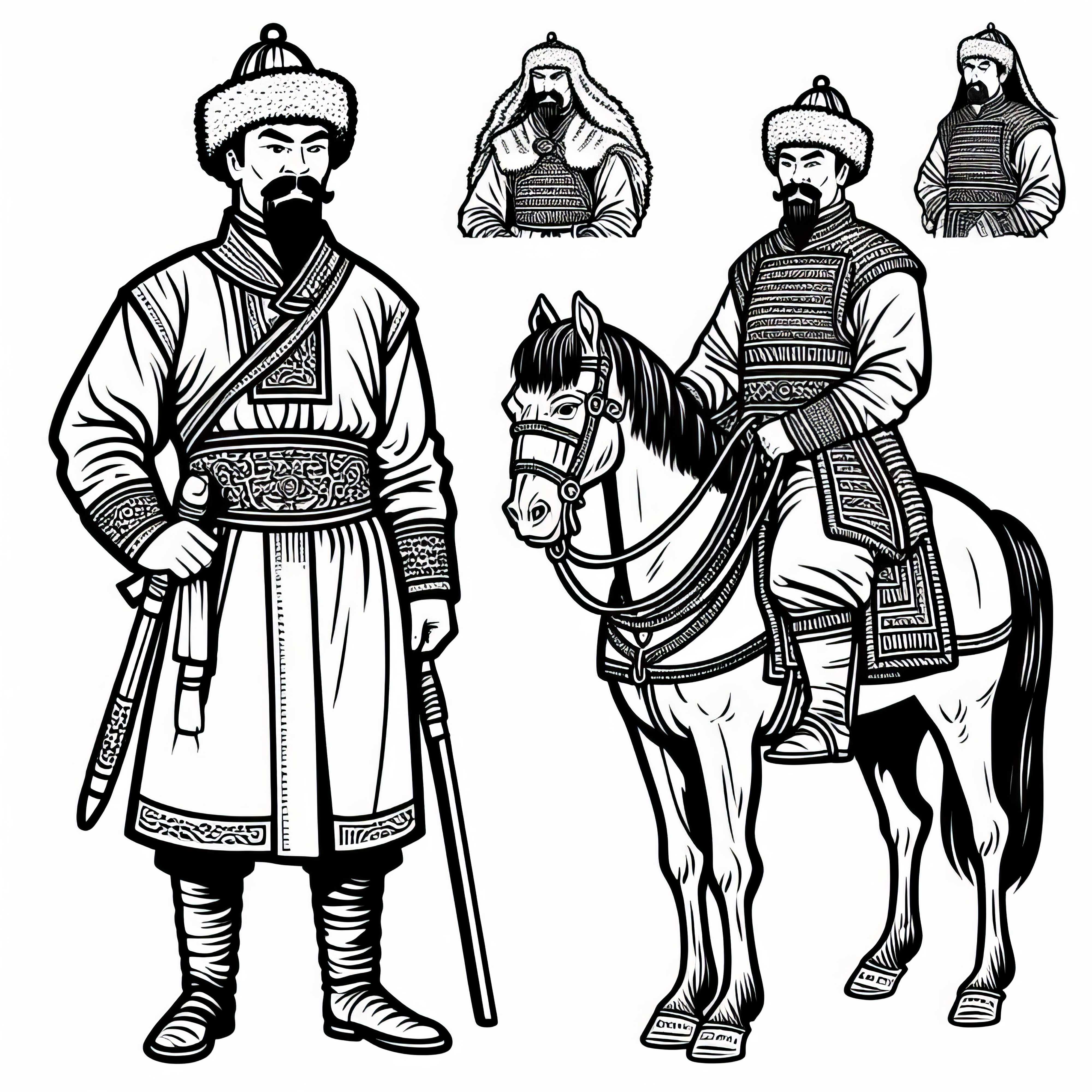 Disegno da colorare di Gengis Khan per mongoli – Immagine da colorare gratuita