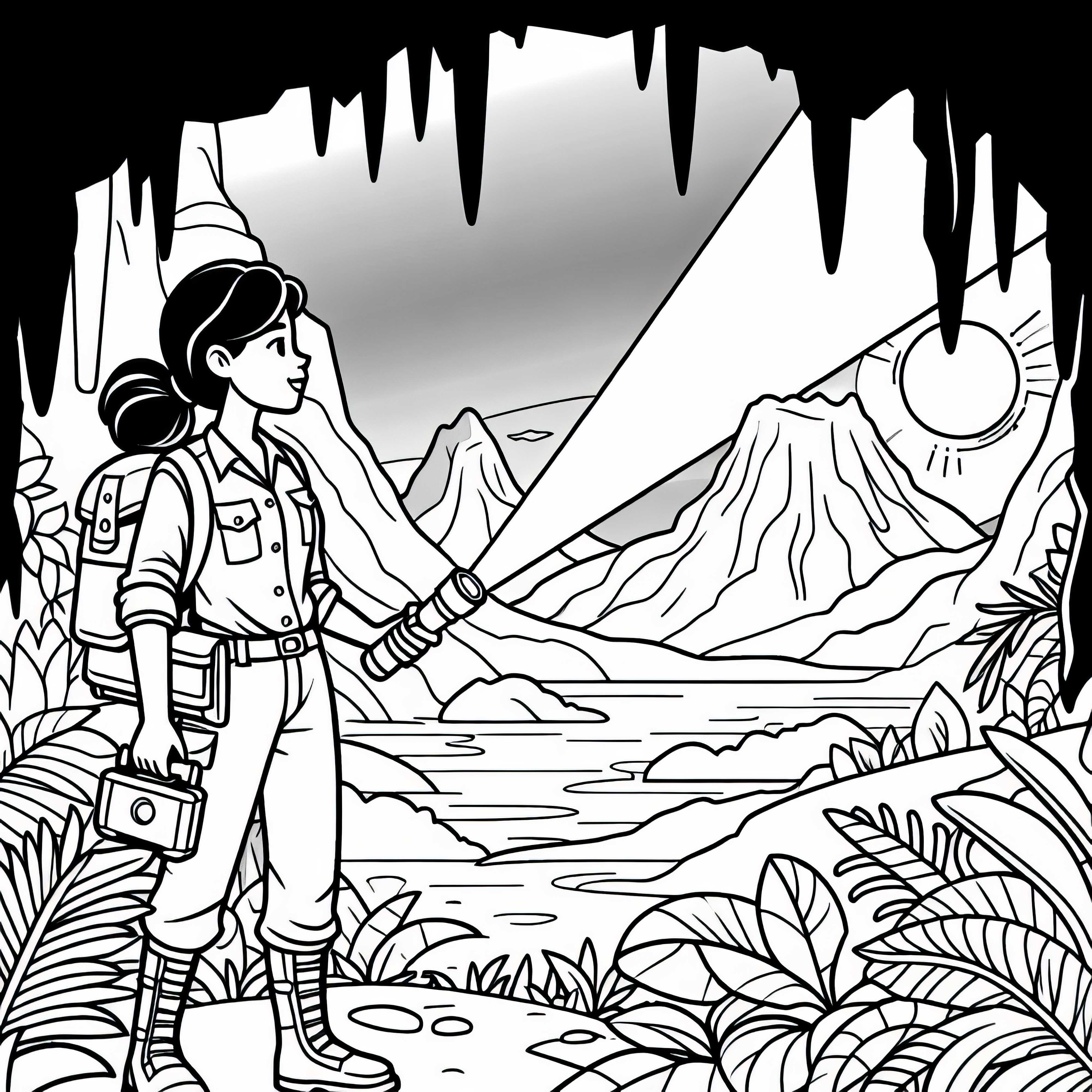 Esploratrice con torcia nella grotta - Disegno da colorare gratuito