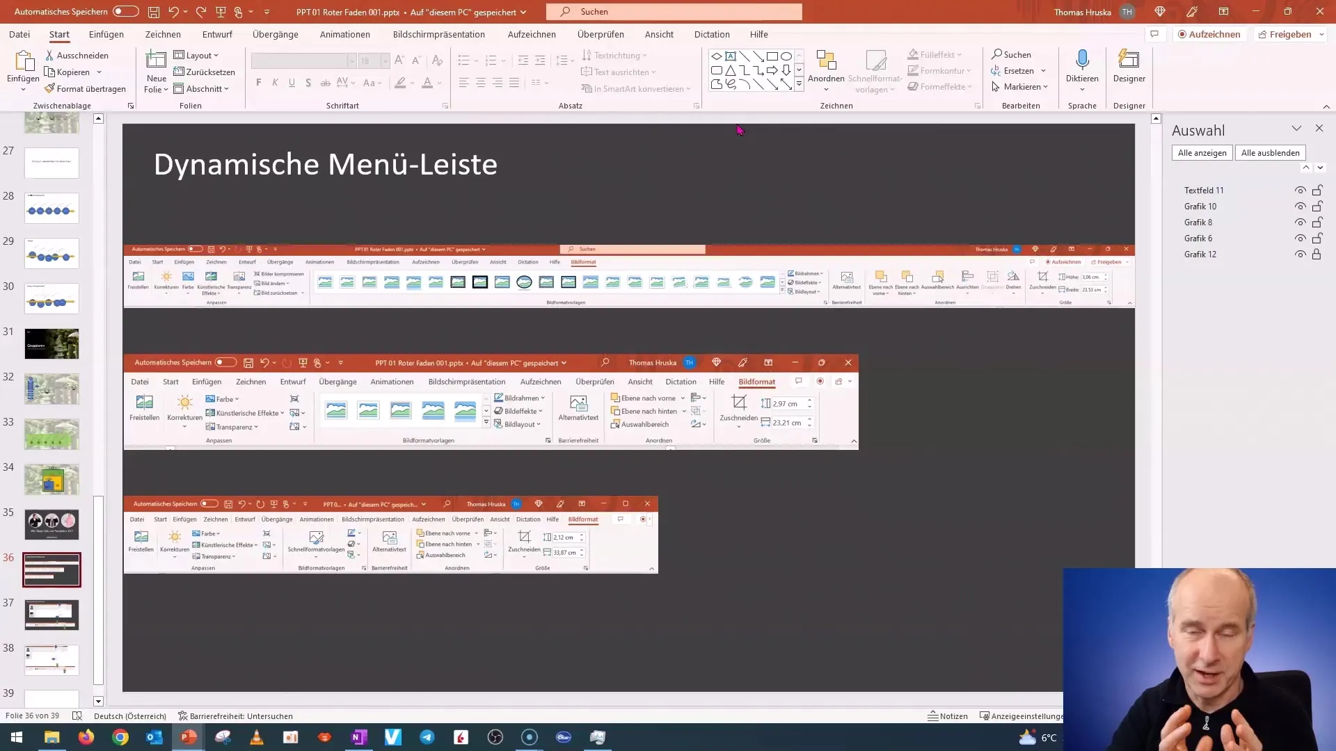 I menu in PowerPoint sono progettati in modo che le funzioni più utilizzate siano sempre a portata di mano. Quando si riduce le dimensioni dello schermo o della finestra, ad esempio passando a un monitor più piccolo, il layout cambia. Nel mio lavoro ho notato che gli elementi si adattano in base alla necessità.