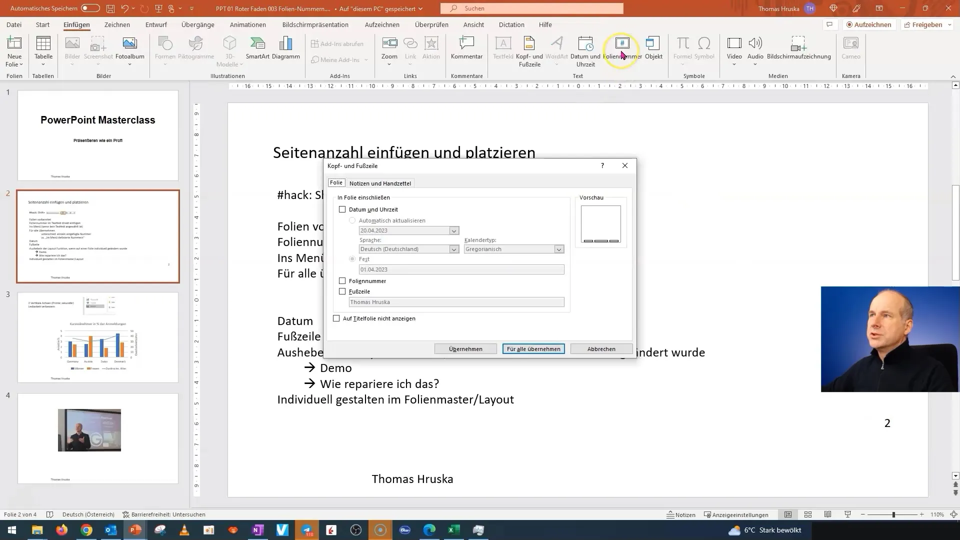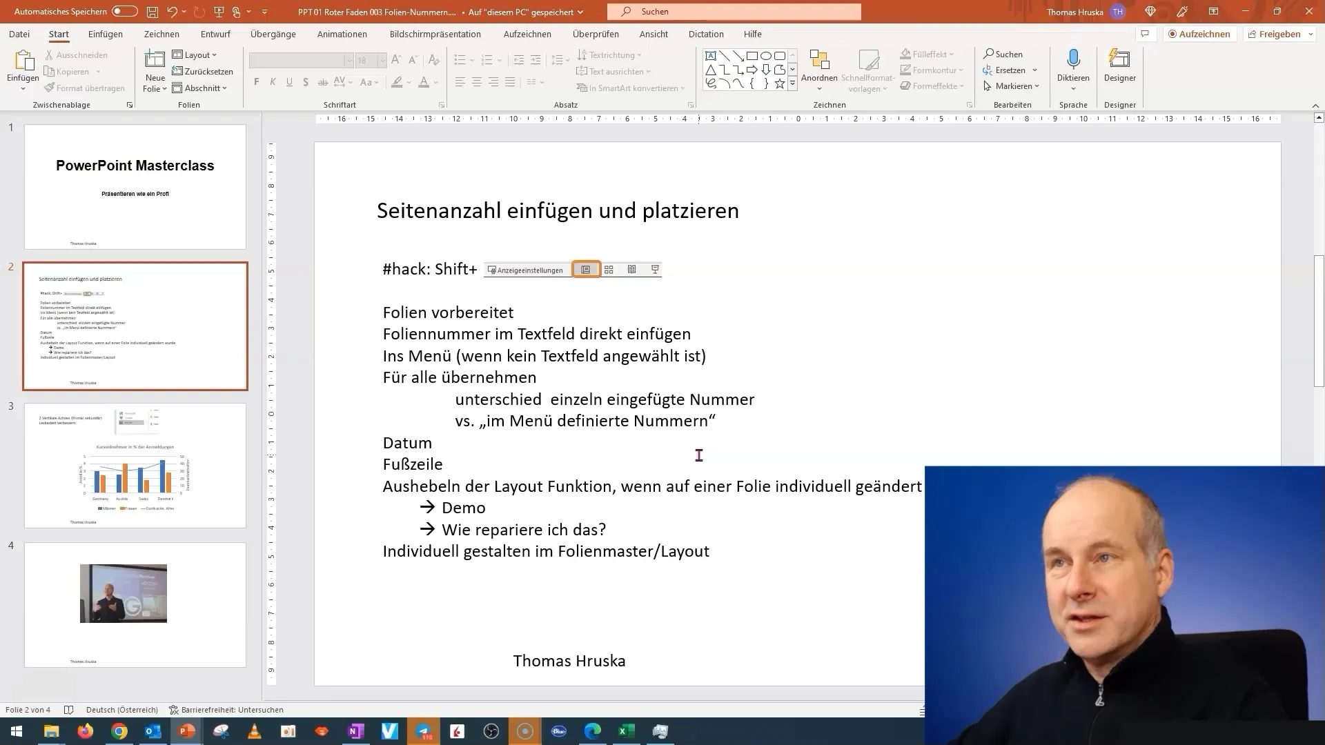 Per una presentazione puoi preparare slide che richiedono numeri di pagina specifici. Se duplichi le slide, ad esempio premendo "Ctrl + D", la numerazione continuerà ad apparire sulle rispettive slide.