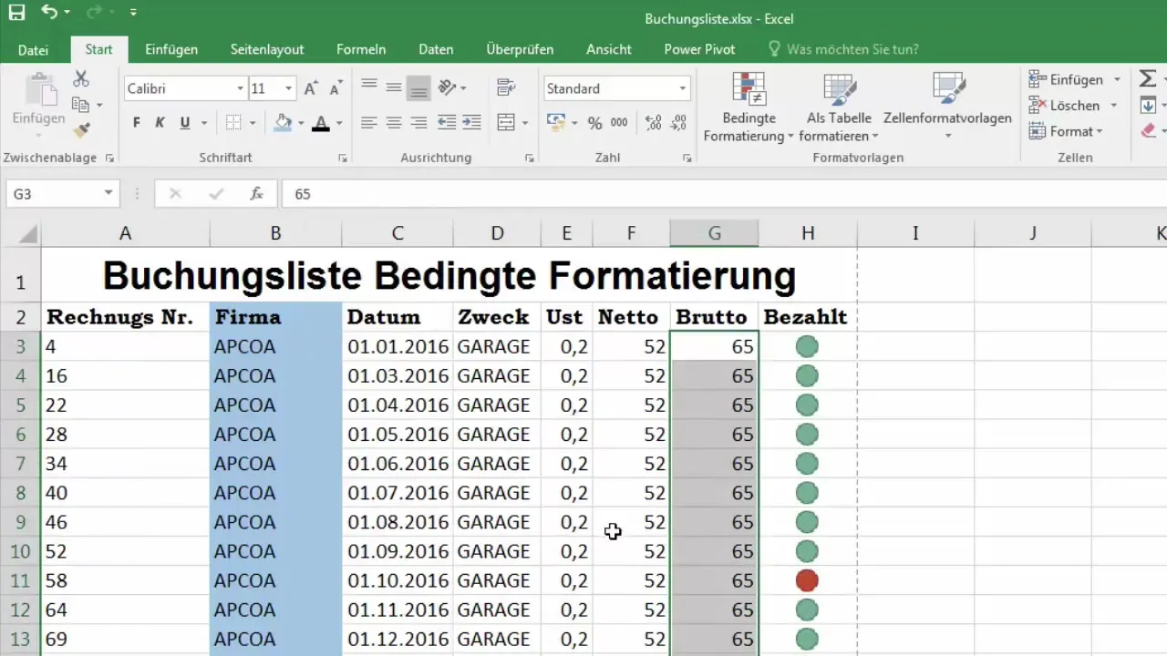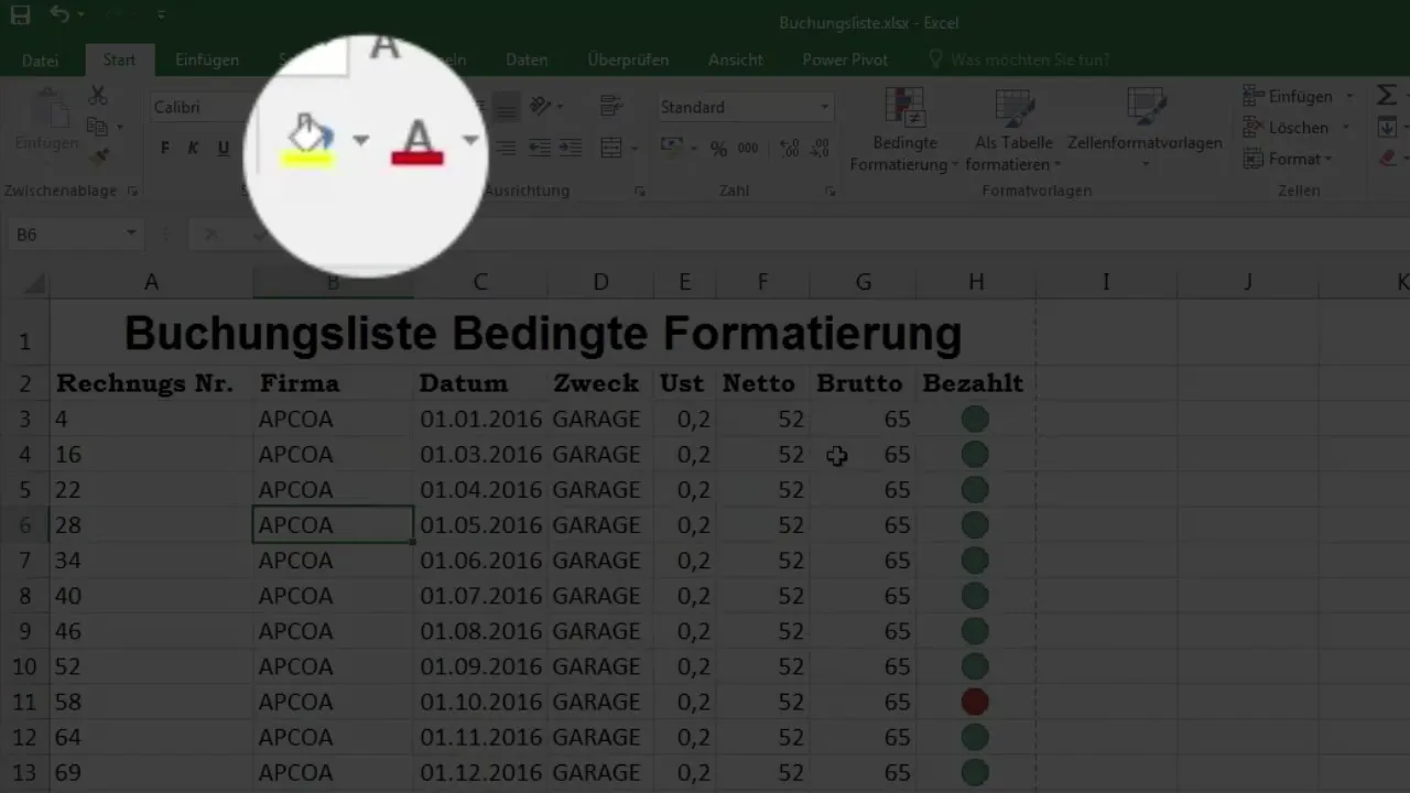 Ora puoi definire il colore di riempimento per adattare lo sfondo delle celle. Se ad esempio desideri rappresentare gli importi in una determinata colonna in rosso, puoi semplicemente selezionare il colore corrispondente. Fai clic sull'icona del colore di riempimento e scegli il colore desiderato.