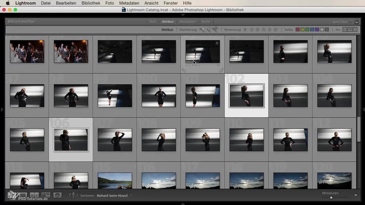 Nel centro dell'interfaccia utente si trova la tua area di lavoro. Qui puoi scorrere le tue foto, ingrandire o ridurre le miniature e personalizzare le diverse opzioni di visualizzazione. Usa la modalità a schermo intero nel modulo della libreria per visualizzare meglio le tue immagini.