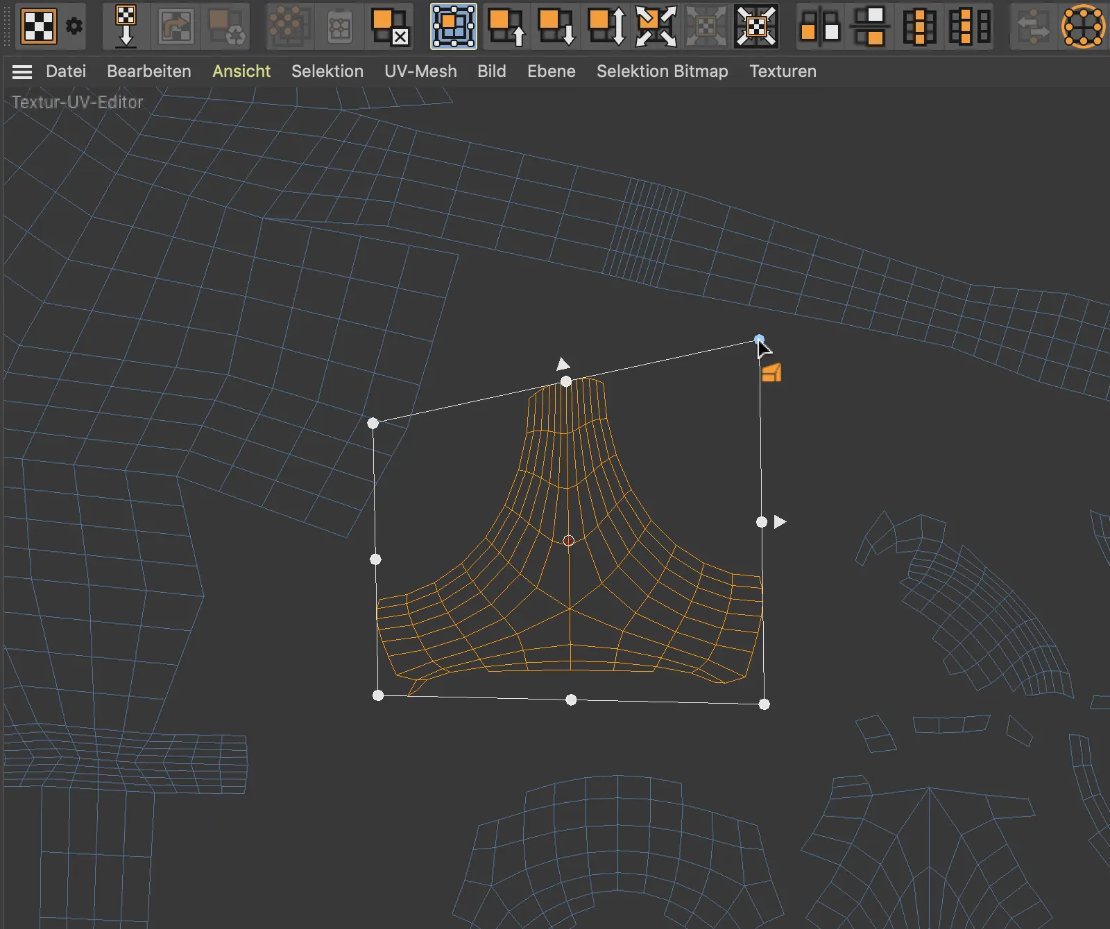 Dopo aver creato una selezione UV, è possibile attivare lo strumento UV-Transformation.