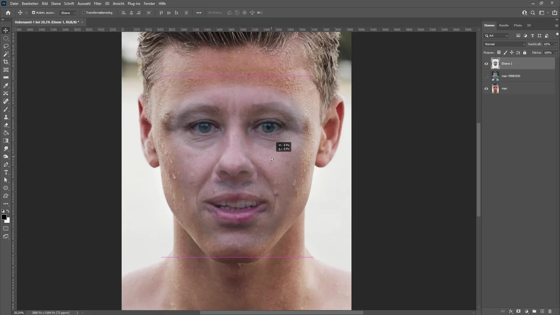 Passaggio 10: Regolazione Finale Se tutto sembra buono, puoi apportare gli ultimi piccoli aggiustamenti per assicurarti che tutto sia posizionato con precisione. Assicurati di allineare il viso, eventualmente ruotandolo leggermente di nuovo con 'Ctrl + T'.