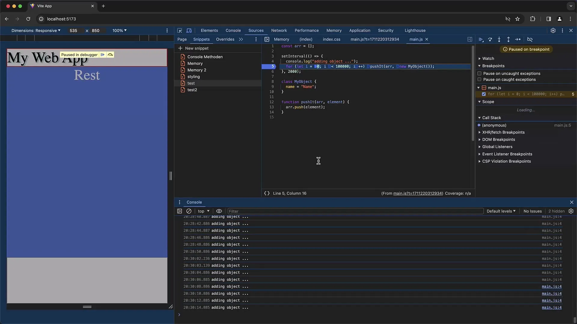 Con la funzione "Pretty Print" puoi convertire JavaScript minificato in un formato più leggibile. Questo è utile quando si lavora con codice offuscato. Puoi attivare questa opzione nelle informazioni sul sorgente.