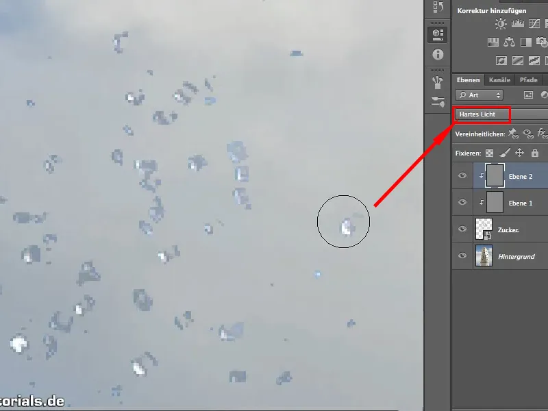 In modo che tutto ciò influisca solo sul mio livello dello zucchero, aggiungo una maschera di ritaglio, tramite Modifica>Crea maschera di ritaglio. Altrimenti illuminerei anche il mio sfondo, cosa che non desidero assolutamente.