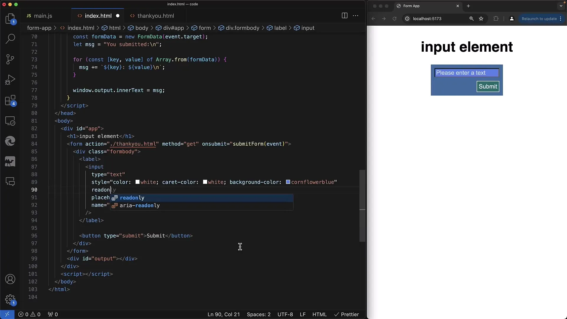 I moduli web sono un elemento indispensabile per ogni sito web. Consentono agli utenti di inserire informazioni e interagire con il sito web. In questo Tutorial condividerò con te i principali attributi per i campi di input che ti aiuteranno a controllare il comportamento di questi campi. Esamineremo in dettaglio gli attributi readonly, disabled, placeholder, minlength e maxlength. Cominciamo!