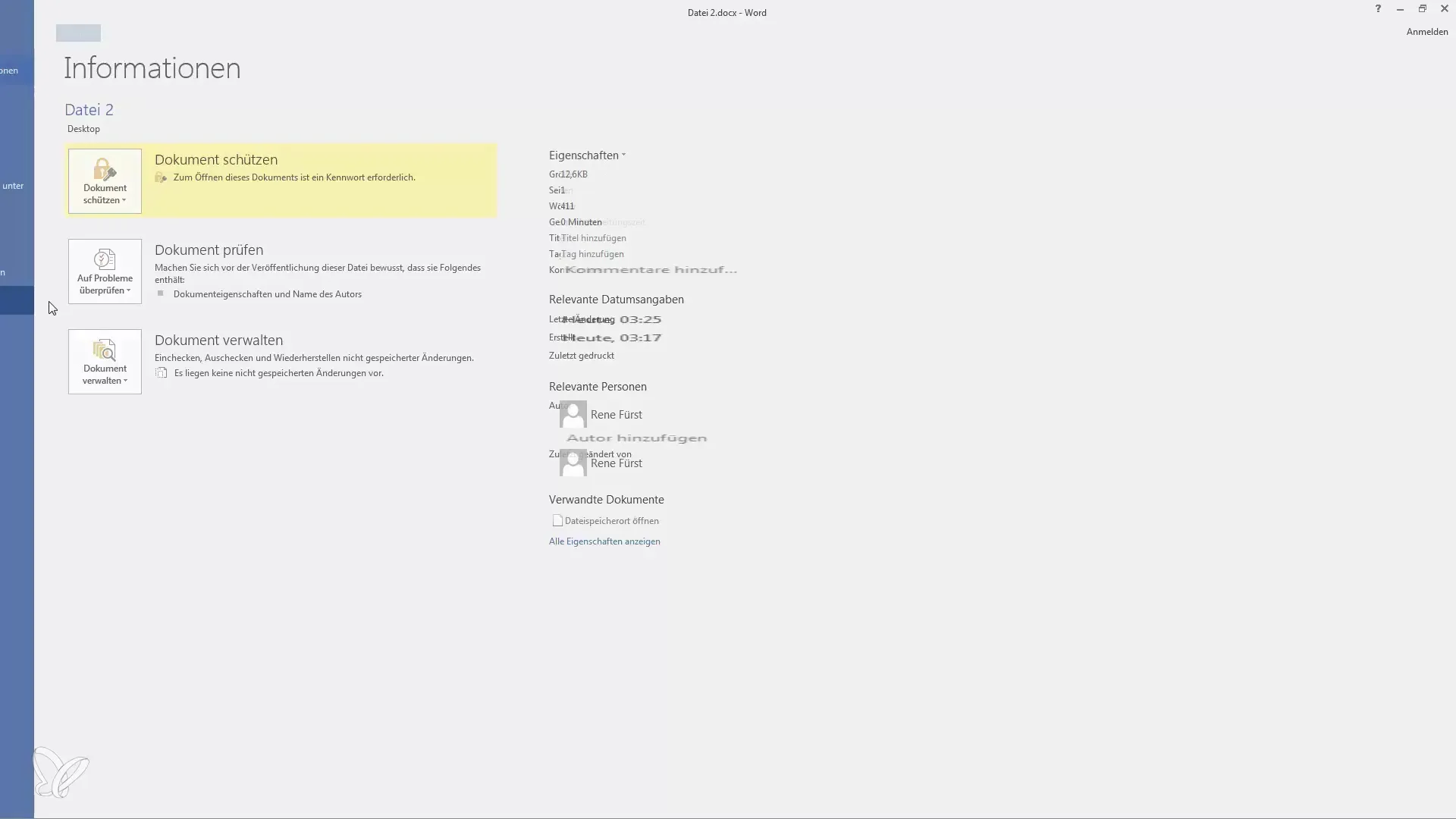 Successivamente, vai al menu "File". Troverai l'opzione "Informazioni". Questa è l'area in cui puoi trovare diverse misure di protezione per il tuo documento.