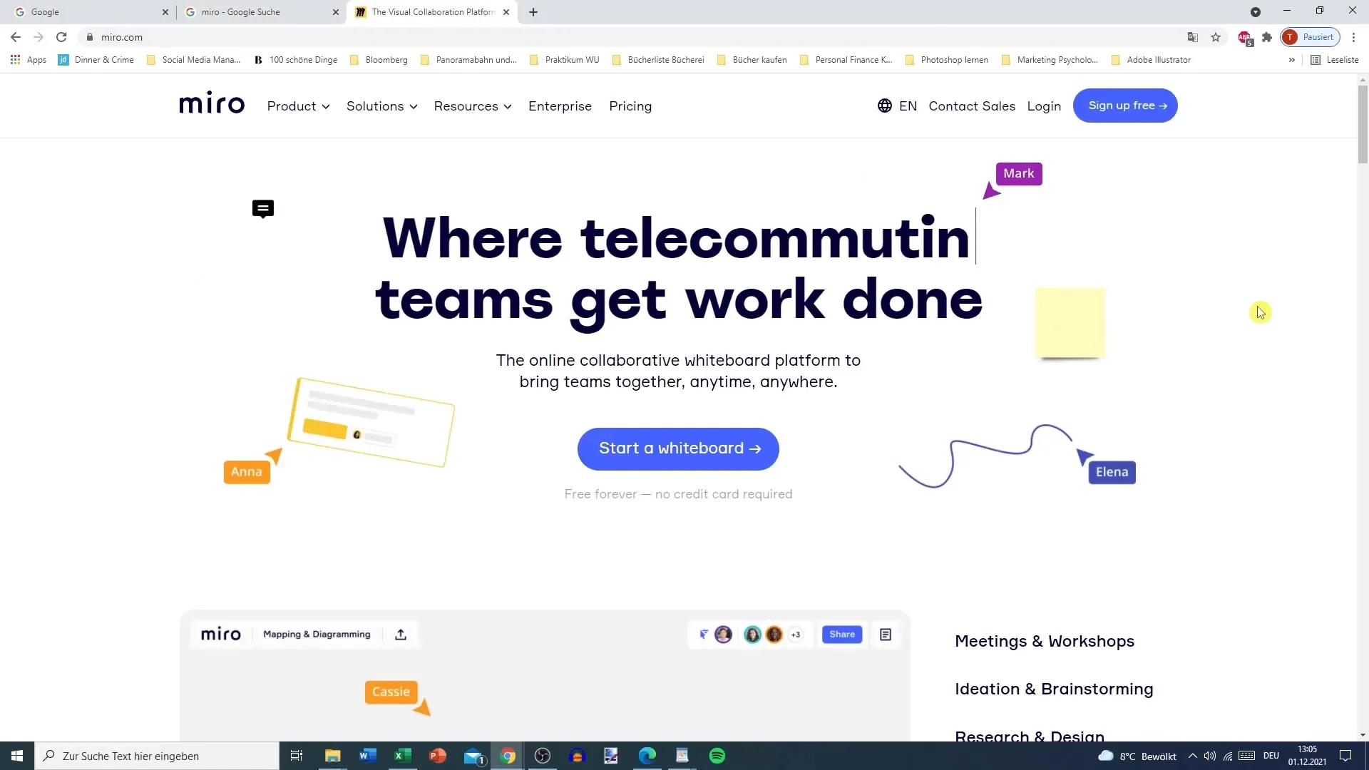 Prima di tutto, devi visitare il sito web di Miro per avere un'idea dei piani disponibili. Apre il tuo browser web e inserisci "Miro" nella barra di ricerca. Fai clic sul link per miru.com.