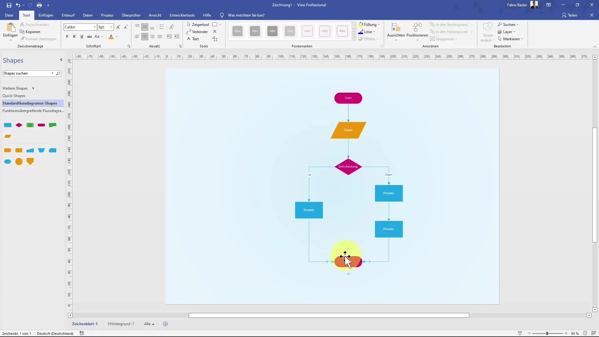 Infine, puoi personalizzare l'intero diagramma di flusso, posizionare frecce e forme in modo che offrano una rappresentazione uniforme e chiara. Salva il tuo diagramma con un nome appropriato.