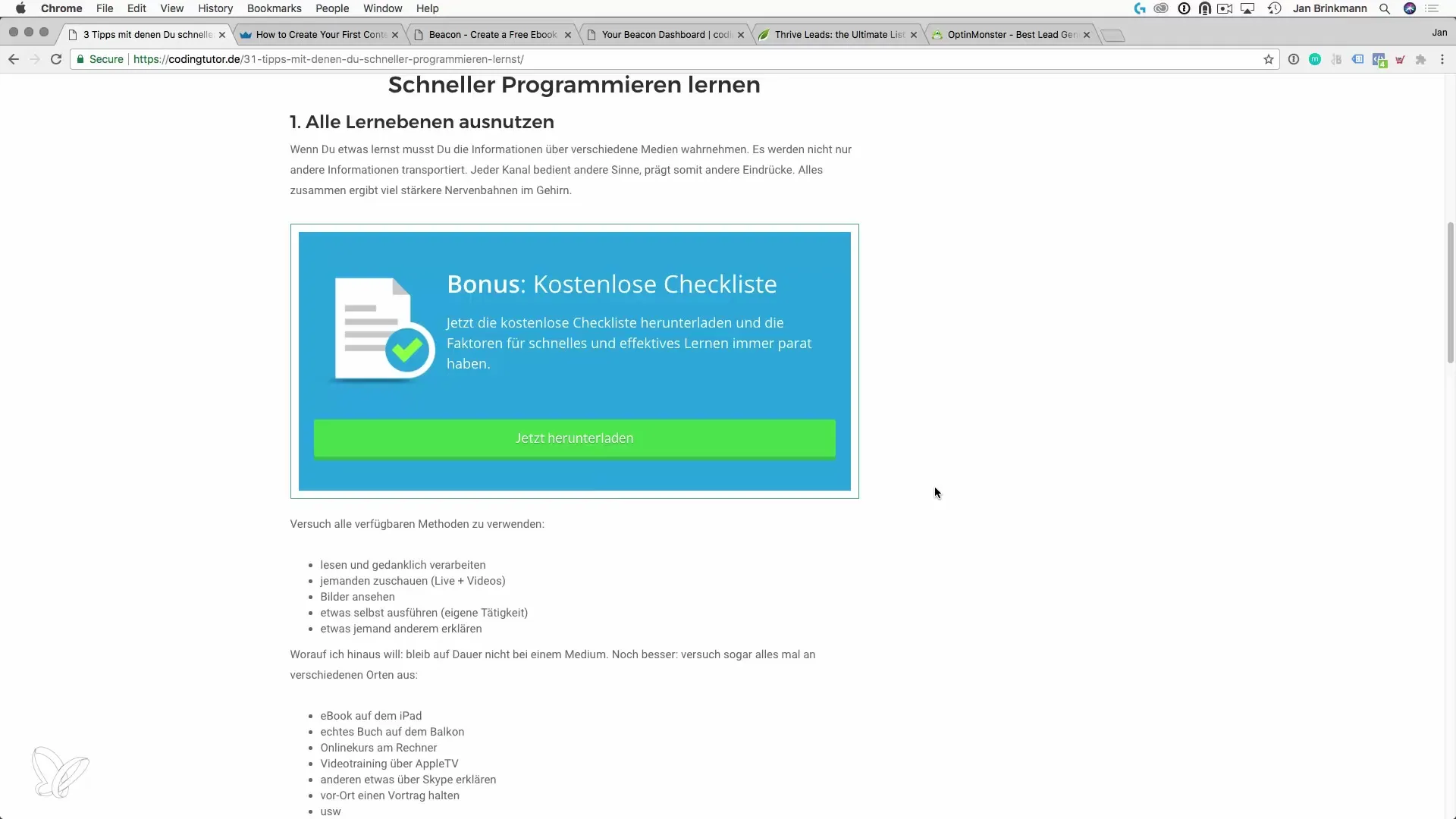 Un altro consiglio prezioso è l'uso di Beacon. Con Beacon puoi creare facilmente ed efficientemente eBook o checklist che puoi offrire come upgrade di contenuto. Crea semplicemente un account, imposta un nuovo eBook o una checklist e sei pronto.