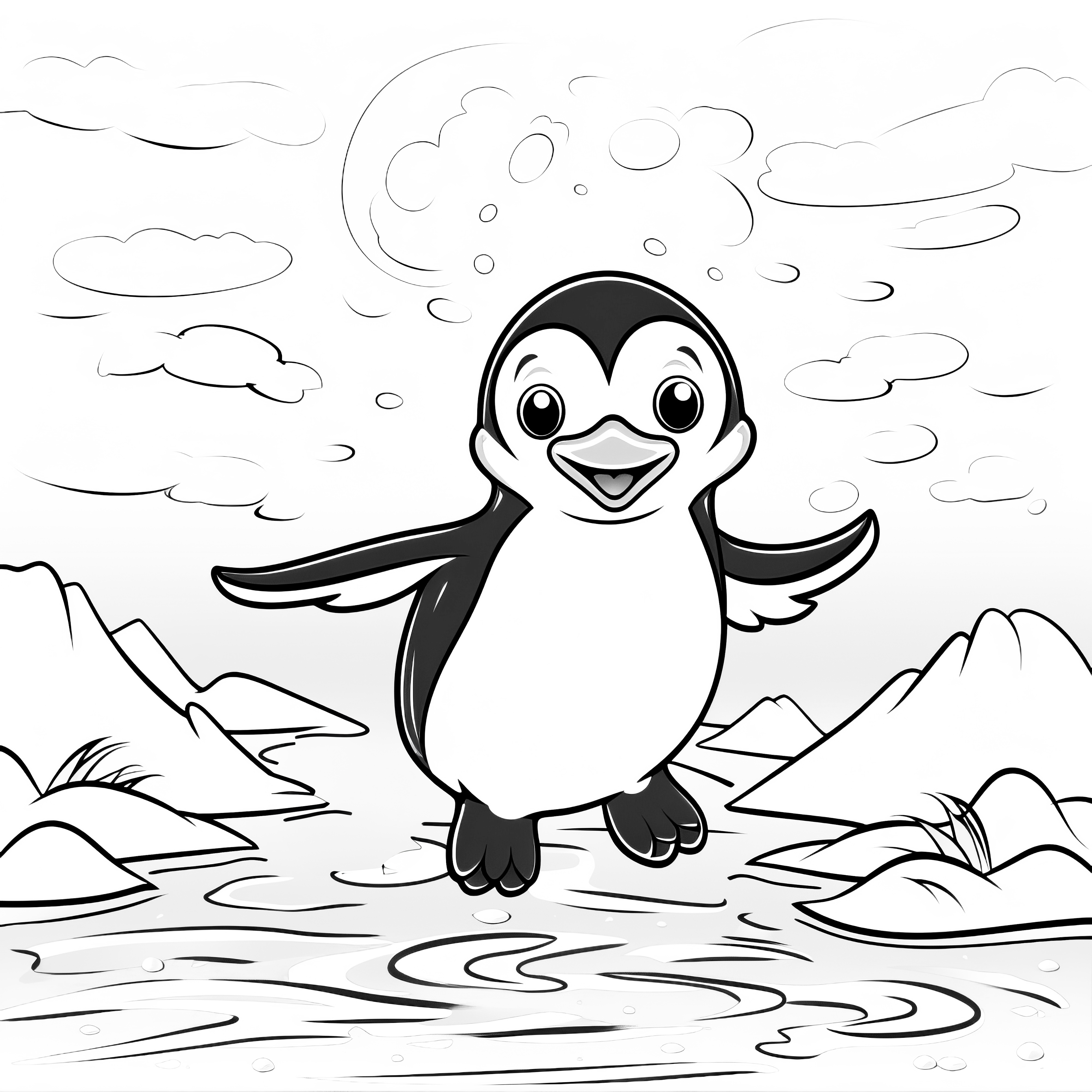 ふわふわのペンギン:子供のための簡単なぬりえページ(無料)
