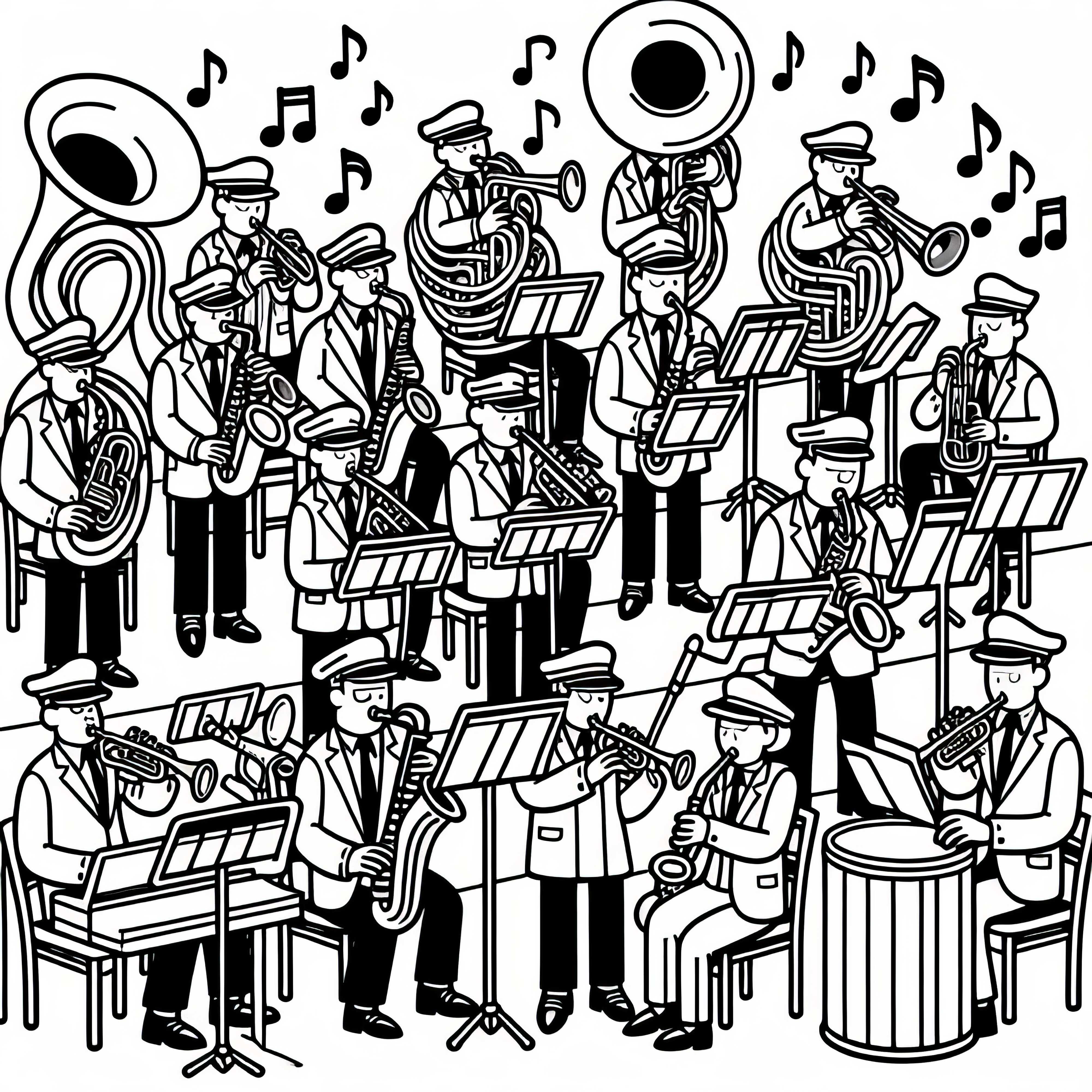 子供たちがさまざまな楽器で音楽を作る – 無料の塗り絵