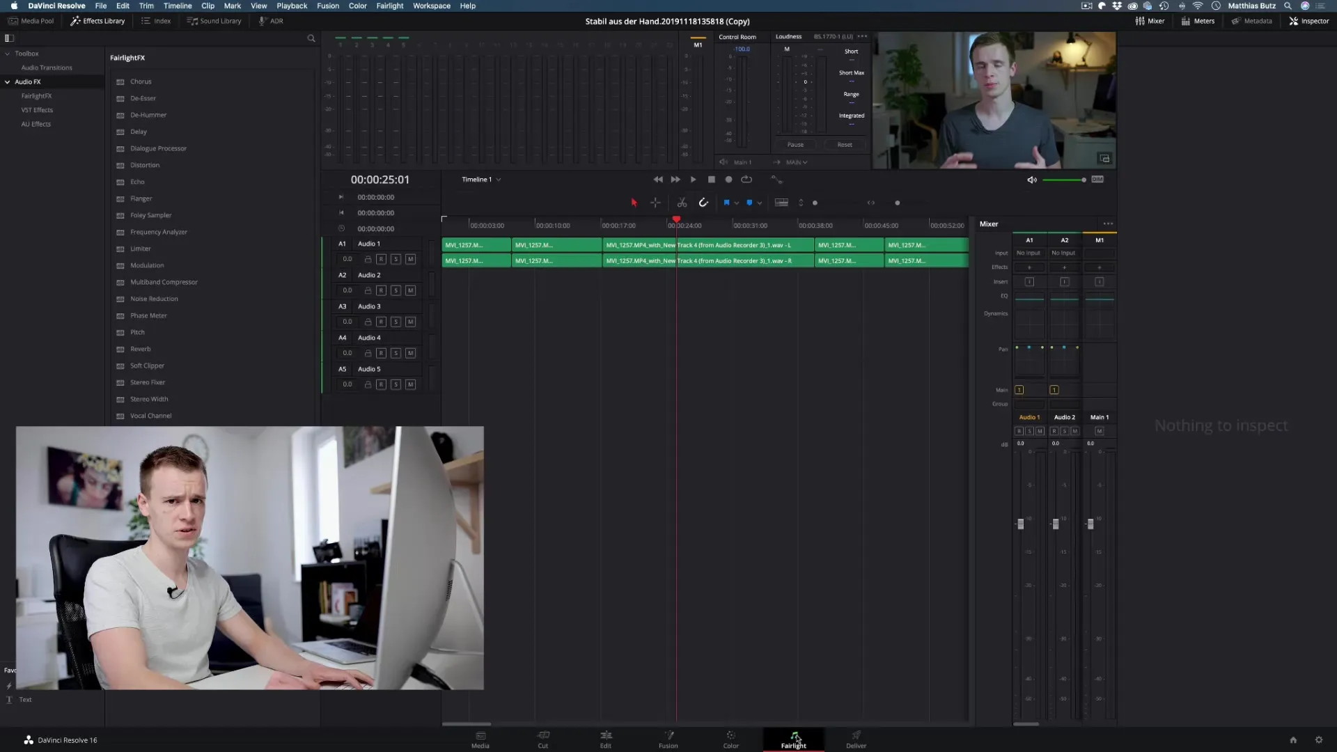 オーディオ編集ツールはどこにありますか?Fairlightエリアにすべての必要なオーディオツールがあります。