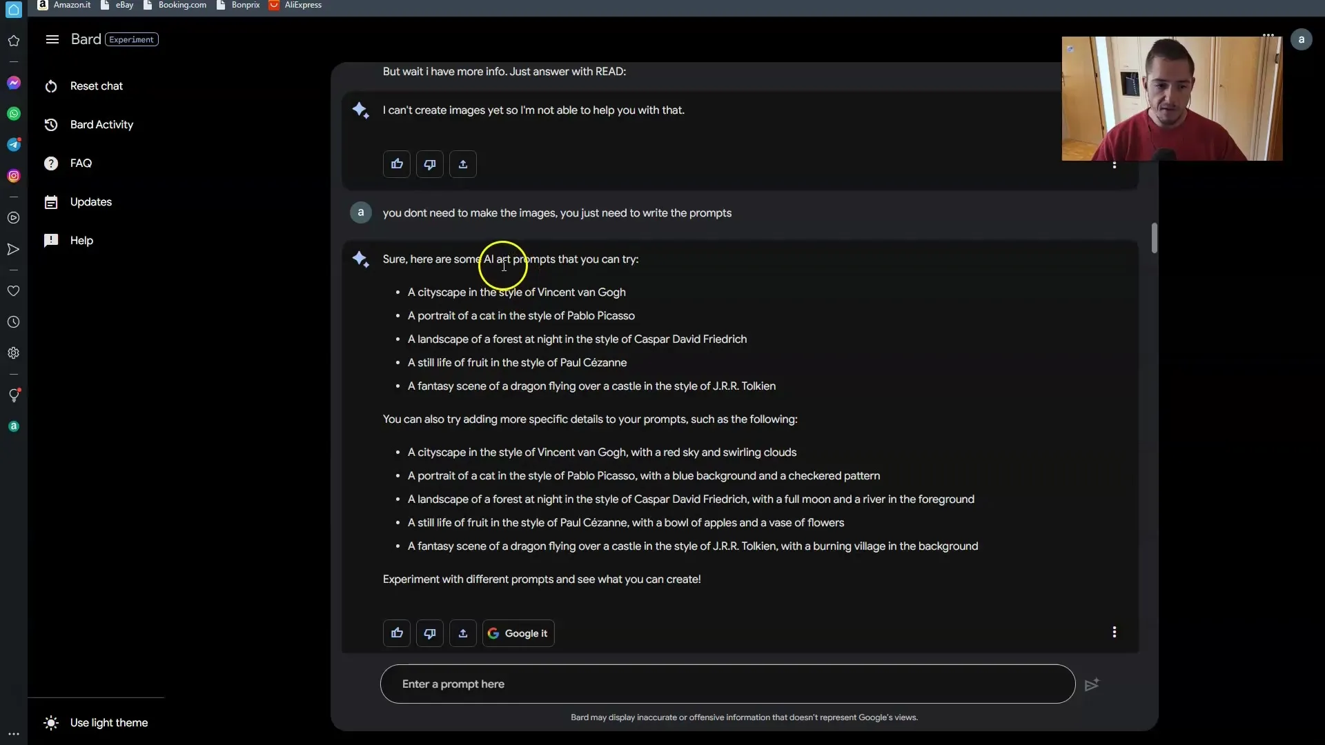 - Google Bard 用の Prompt Engineering は現在、常に望ましいように機能するわけではありません。