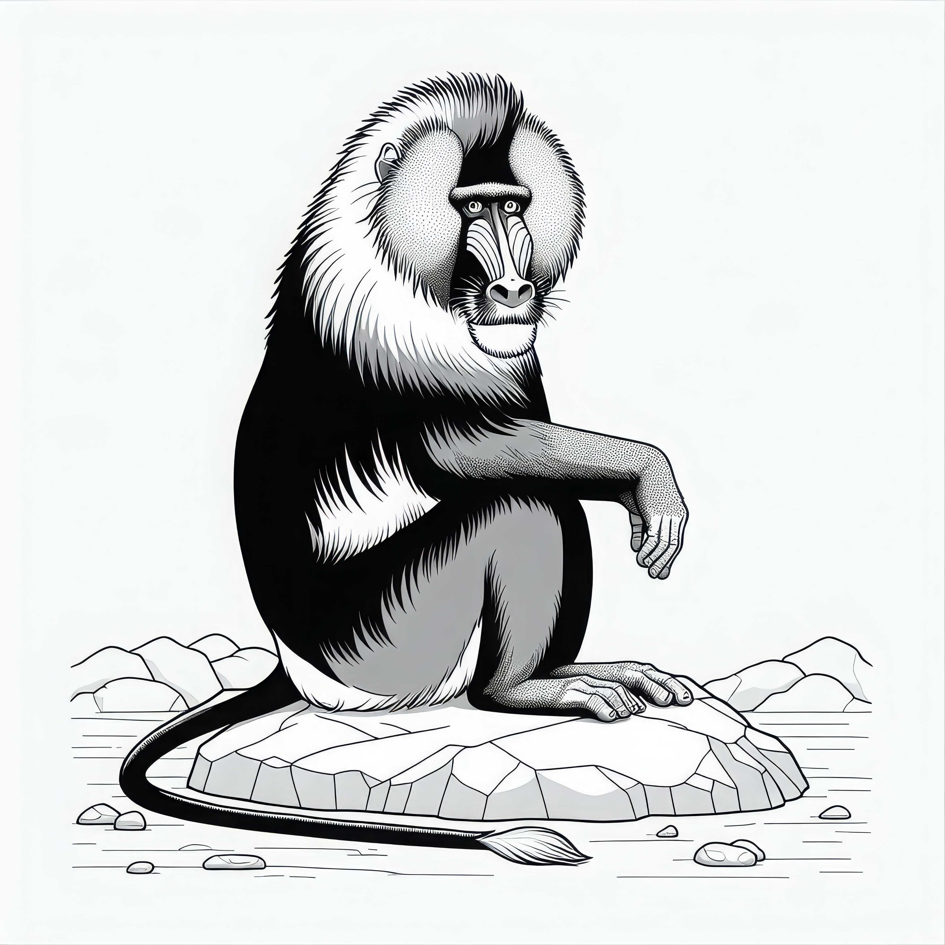 맨드릴이 발로 머리를 긁고 있다 – 무료로 다운로드할 수 있는 색칠공부 이미?