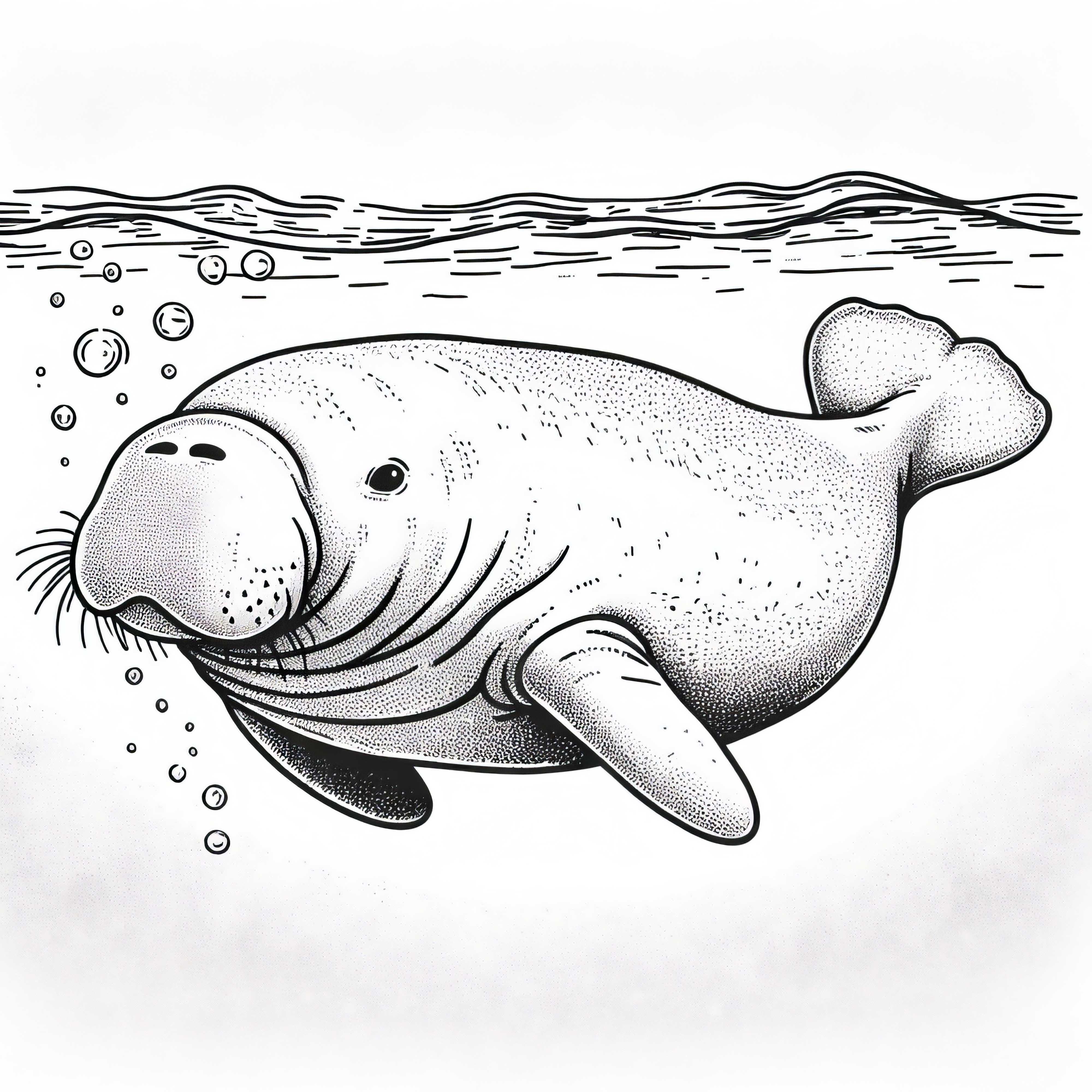 듀공이 해저에서 해초를 먹고 있습니다 - 무료 색칠 그림