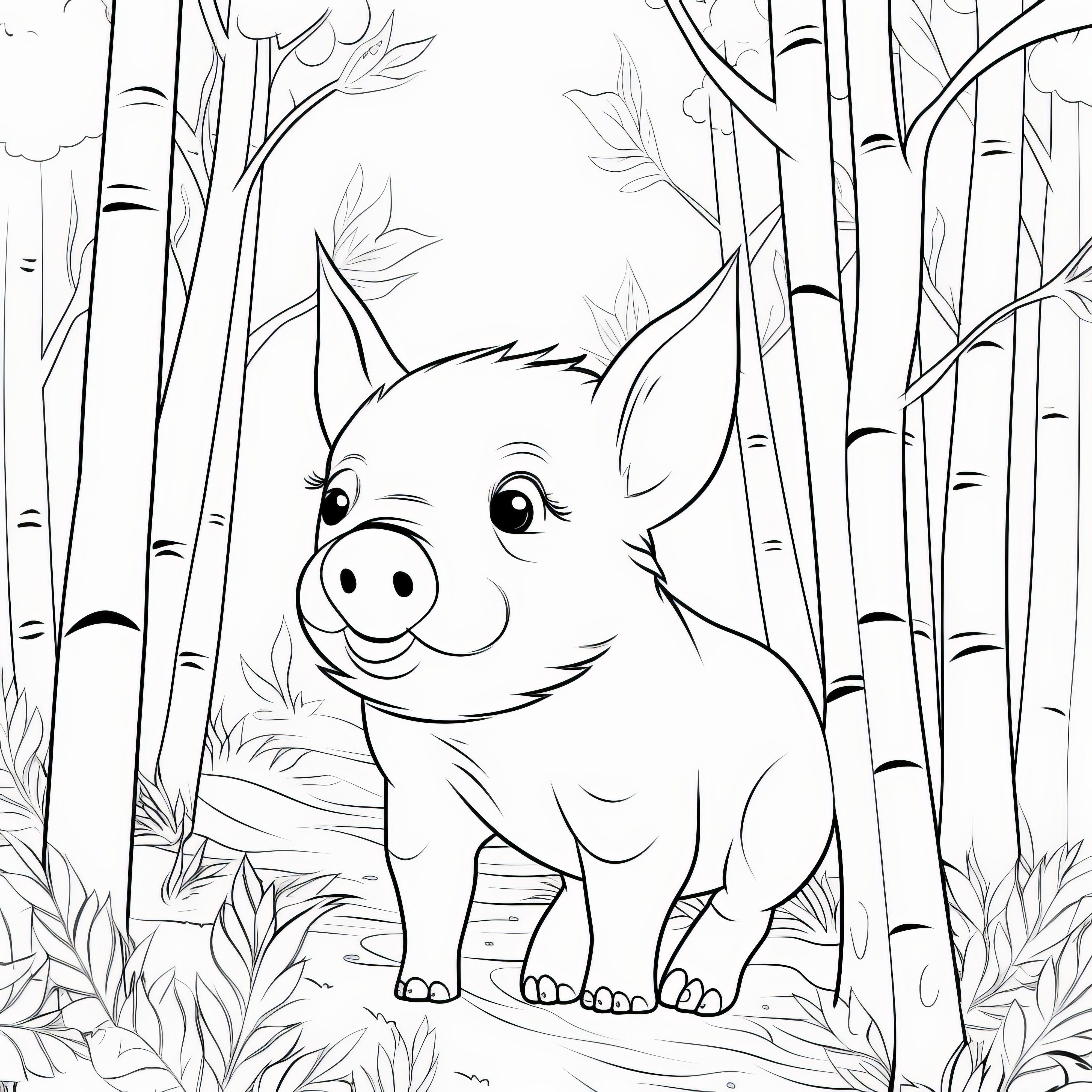 숲에 서 있는 돼지: 어린이를 위한 무료 컬러링 페이지
