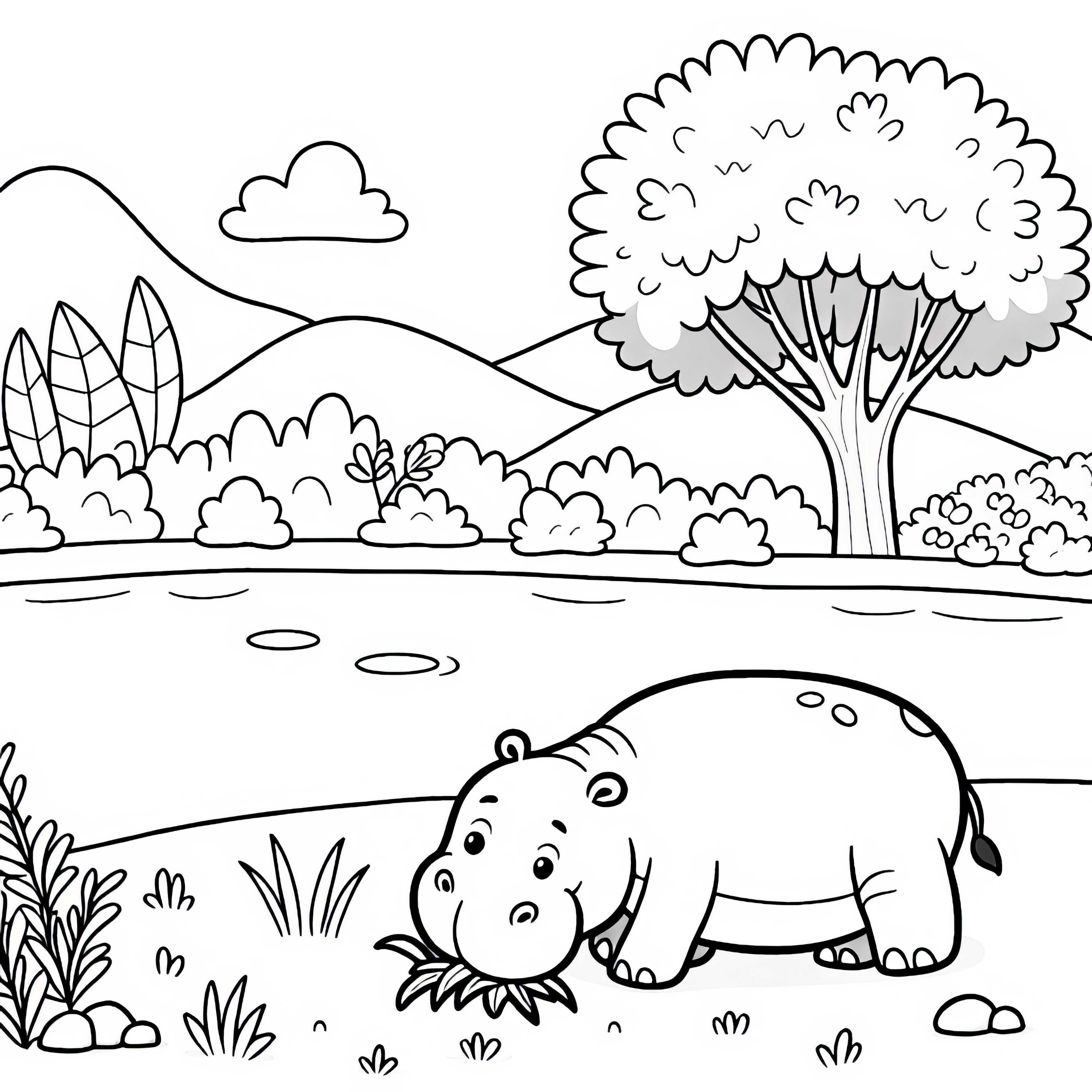 하마가 나타납니다 - 간단하고 무료인 색칠 공부 용?