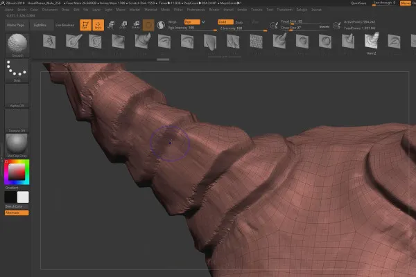 Curve Brush에서는 새로운 옵션이 추가되었고, Lazy Mouse 기능으로 붓을 사용할 때 더 깔끔한 선을 만들 수 있습니다. 기존의 2D 알파는 추가 차원을 얻어 이제 한 번의 붓 터치로 전체 신체 부위를 작업할 수 있습니다. 또한 비디오 트레이닝에서 Vector Displacement Mesh를 탐색하고 Dynamesh의 새로운 기능과 PolyGroupIt 또는 ZBrush to Photoshop와 같은 플러그인을 활용하는 방법에 대해 자세히 알아보세요.