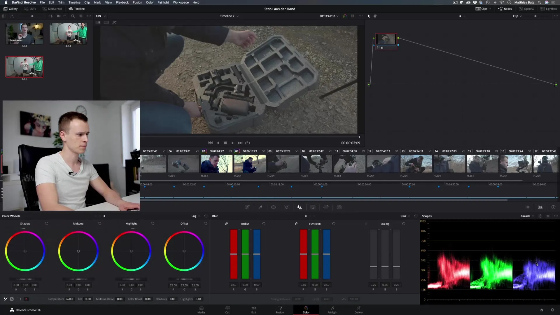 마지막으로 모든 Scopes를 확인하여 밝기, 채도 및 색조가 원하는 값 내에 있는지 확인하세요. 눈이 속지 않도록 하고, 최상의 색상 품질을 얻기 위해 Scopes를 믿어야 합니다.